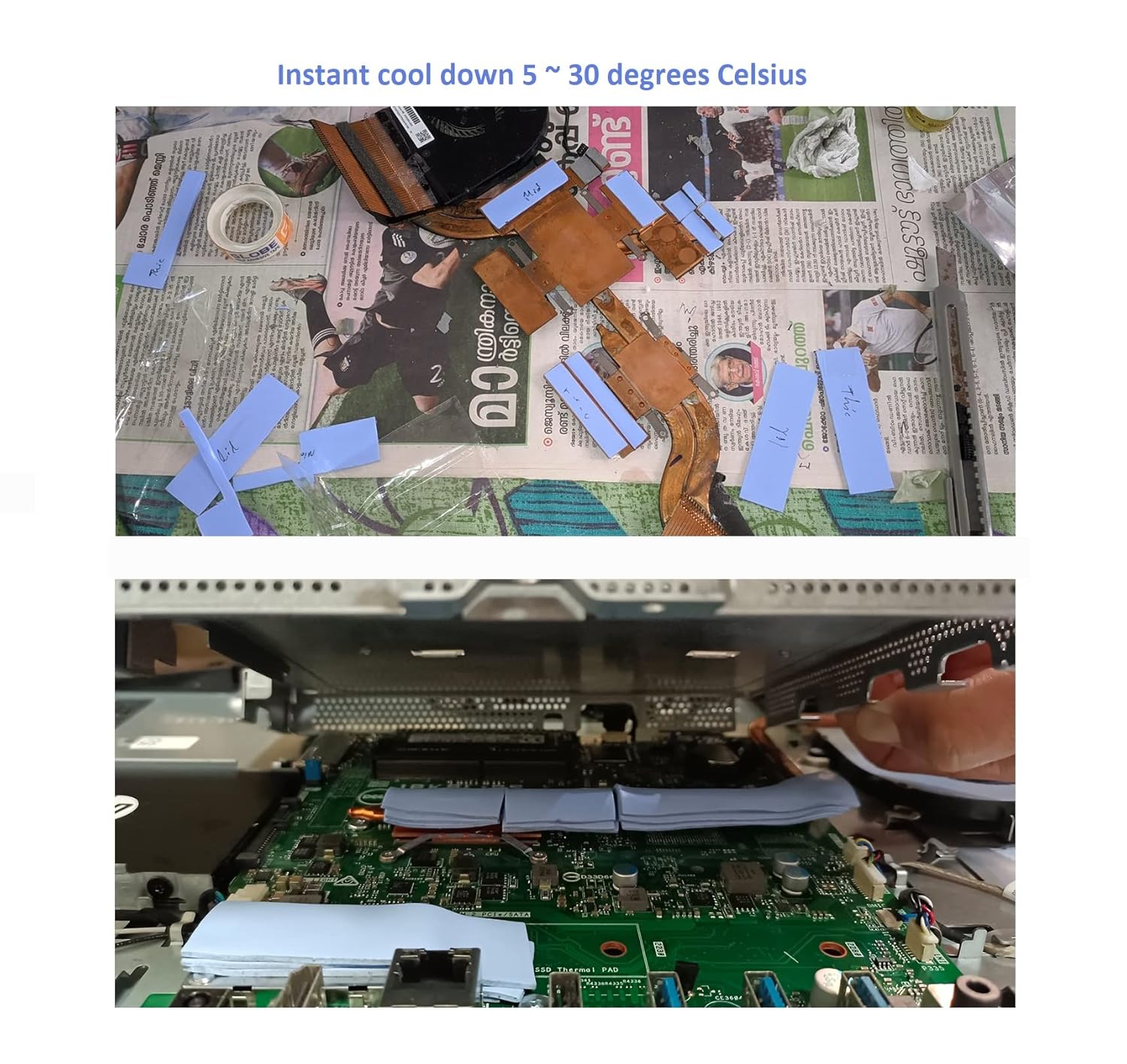 - [ Easy to Use ] Clean the heating surface. Measure and cut to suitable size. Remove the protective film from bottom of the thermal pad. Stick it on the surface, press lightly, then remove the protective film from the top. Install the heat sink and make good contact with thermal pad. The thermal pads become stickier when heated