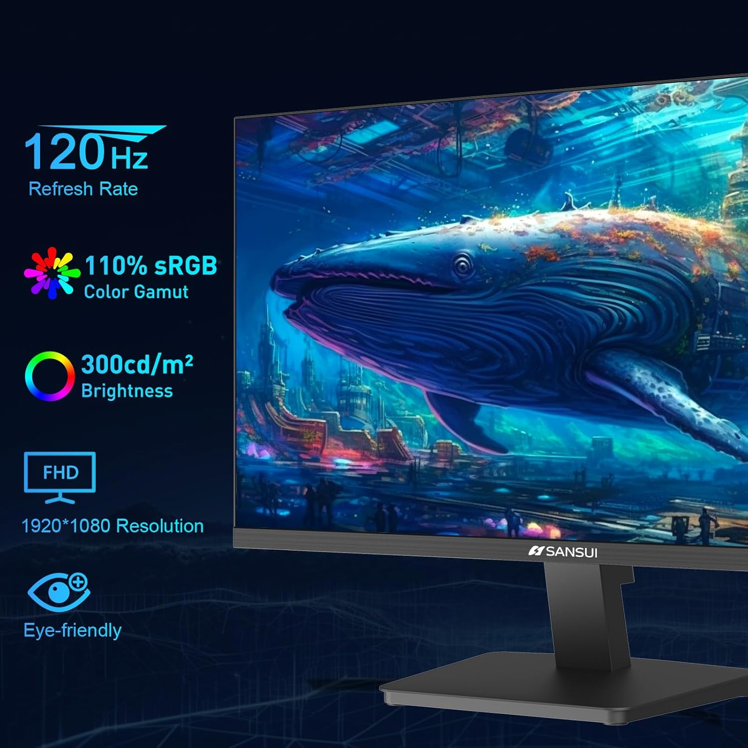 SANSUI 27 Inch Computer Monitor 120Hz, FHD 1080P Monitor, HDMI DP Ports FreeSync, HDR 110% sRGB, Tilt Adjustable Frameless VESA Compatible for Office and Home (ES-27F2, HDMI Cable Included)