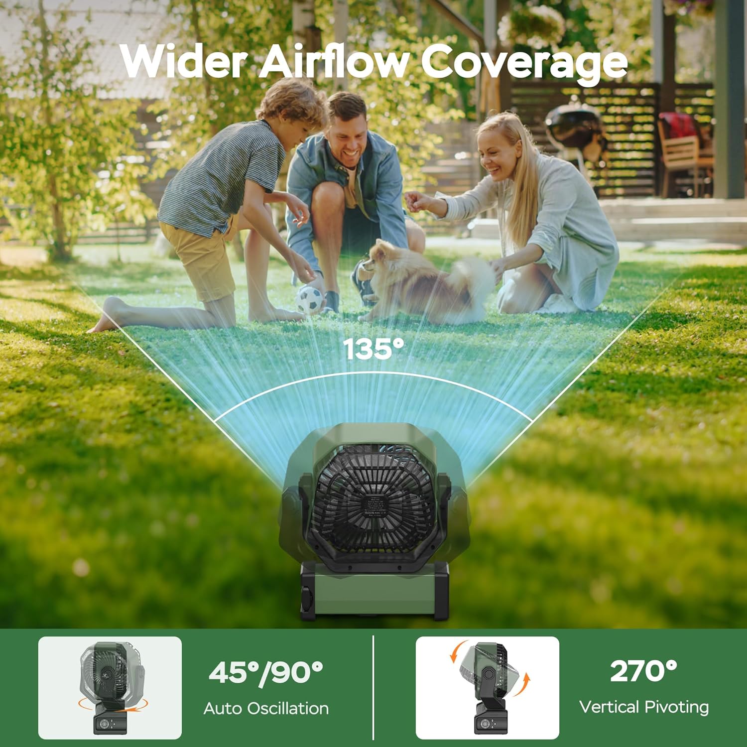 - Wide-angle Oscillation: The desk fan can oscillate within 45°/90°automatically, covering a larger wind area of 135°to cooling more people at the same time. The 8-inch fan head can also pivot within 270°,ensuring it blows in the direction you want