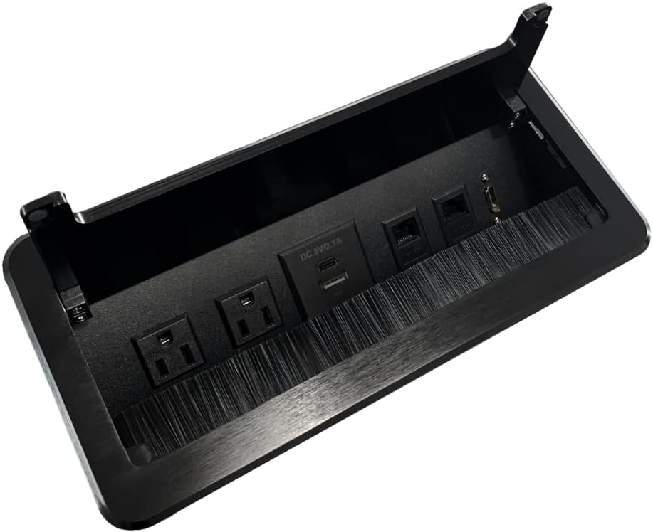 - 【High-quality Materials】 The Table power box lid is made of 6063 aluminum, it is made by CNC precision machining, it is finer and thicker than pulling by aluminum. The recessed parts are made of iron. Fully enclosed bottom box, it is safer and more beautiful than before.