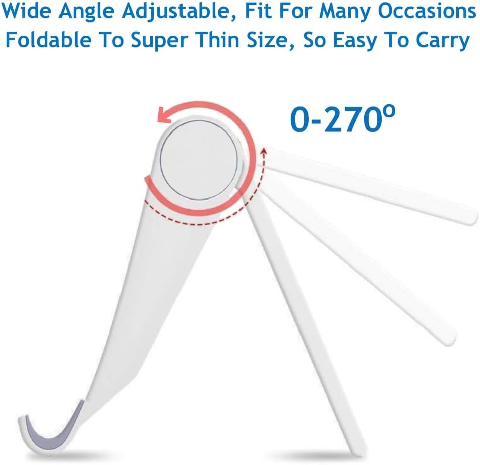 - 【WIDE ANGLE ADJUSTABLE】 Our tablet holder can be wide adjusted to 0-150° free angle, adapt to a variety of different angles. So it can stably stand on the table or bed, hold your phone steadily.