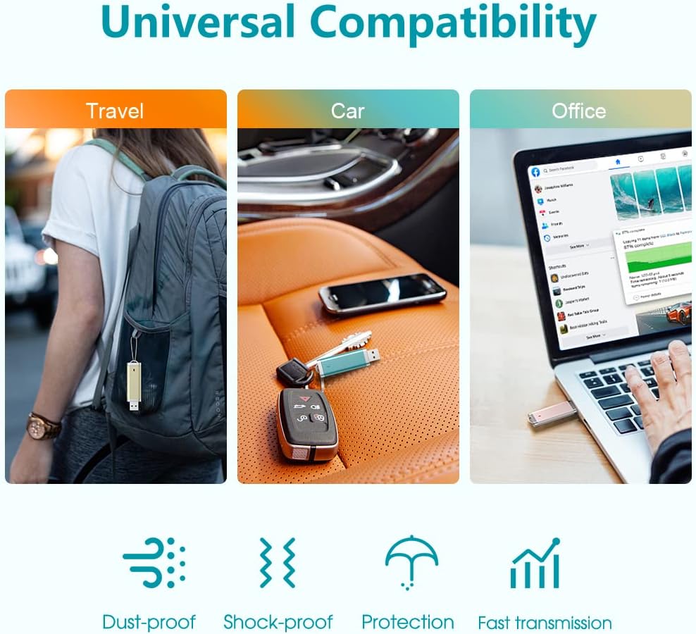 - Super Convenient: Plug and play, no driver needed. Ideal for outdoor workers to store large-capacity data. Support Win98/ME/2000/XP/Vista/7/8/10 and Linux, support portable speakers, car speakers with USB 2.0 port