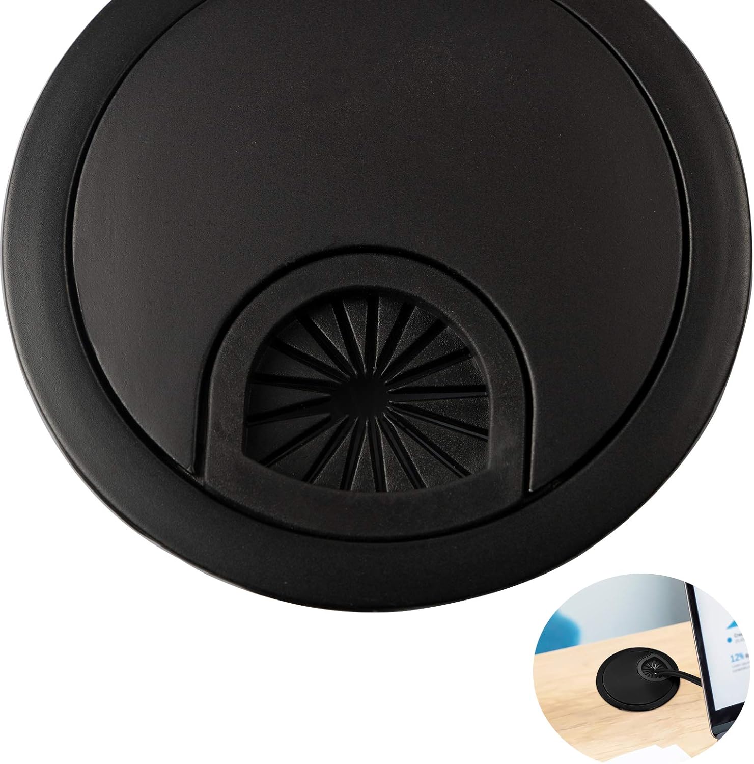 Desk Grommet for Wire Organizer,PC Computer Desk Plastic Grommet Cord, Tidy Cable Hole Cover Organizers,2 Pack (53mm, Black)