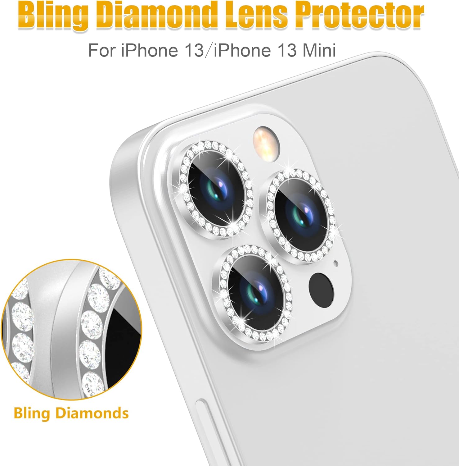 - ā[Two Bling Effects] There are 3 bling diamond rings and 3 bling glitter rings in the package. Free to match according to your own personal preferences. These rings glass are optical grade, protect your iPhone 13 Pro / 13 Pro Max camera lens from damage and scratches and has no effect on taking photos. Fully high transmittance sapphire glass with AR anti-reflection function: Camera anti-fall protection and Bling Bling Effect and Fully restored image quality.