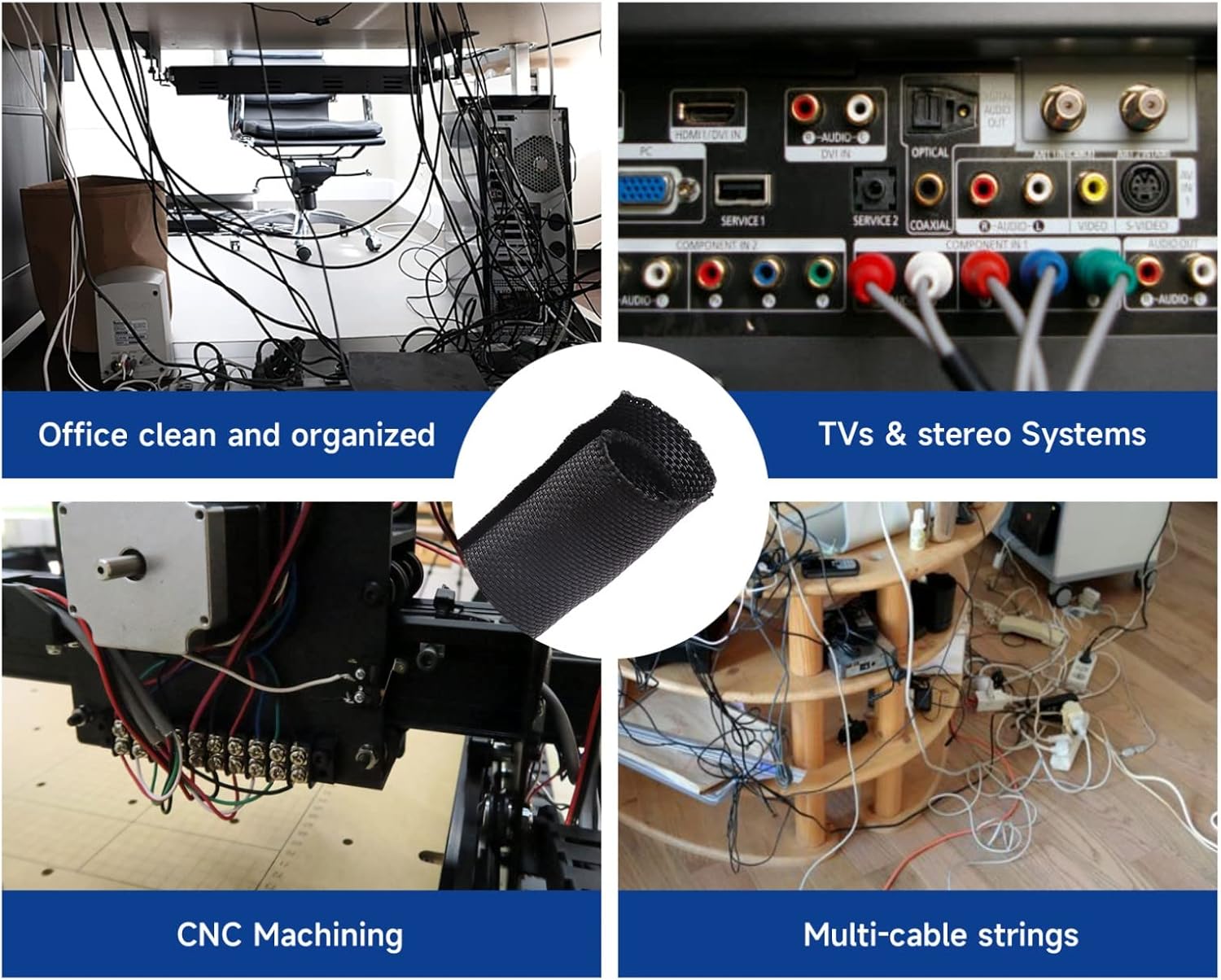 - Creating a Well-organized Space:Sonoreboom wire protector tubing a classy,simple-to-use solution to the ugly mess of cables that comes with every TV;made the exposed wiring disappear into neat black cables;braided cable wrap is a great option for home cable management;it will protect your cables from your pets while also keeping the cables organized