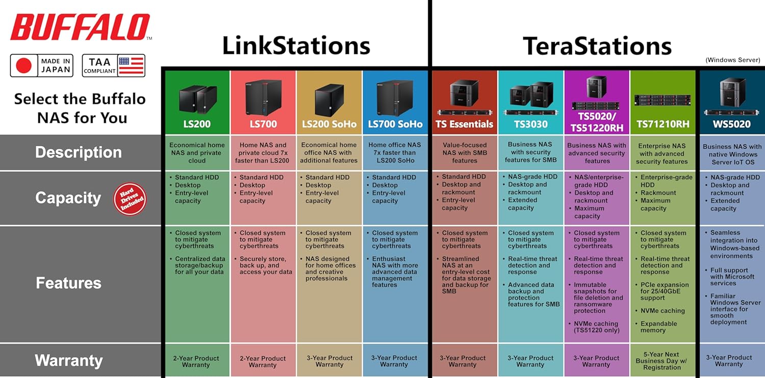 BUFFALO TeraStation 5420DN 4-Bay Business Desktop NAS 16TB (2x8TB) with Hard Drives Included RAID iSCSI Network Storage File Server