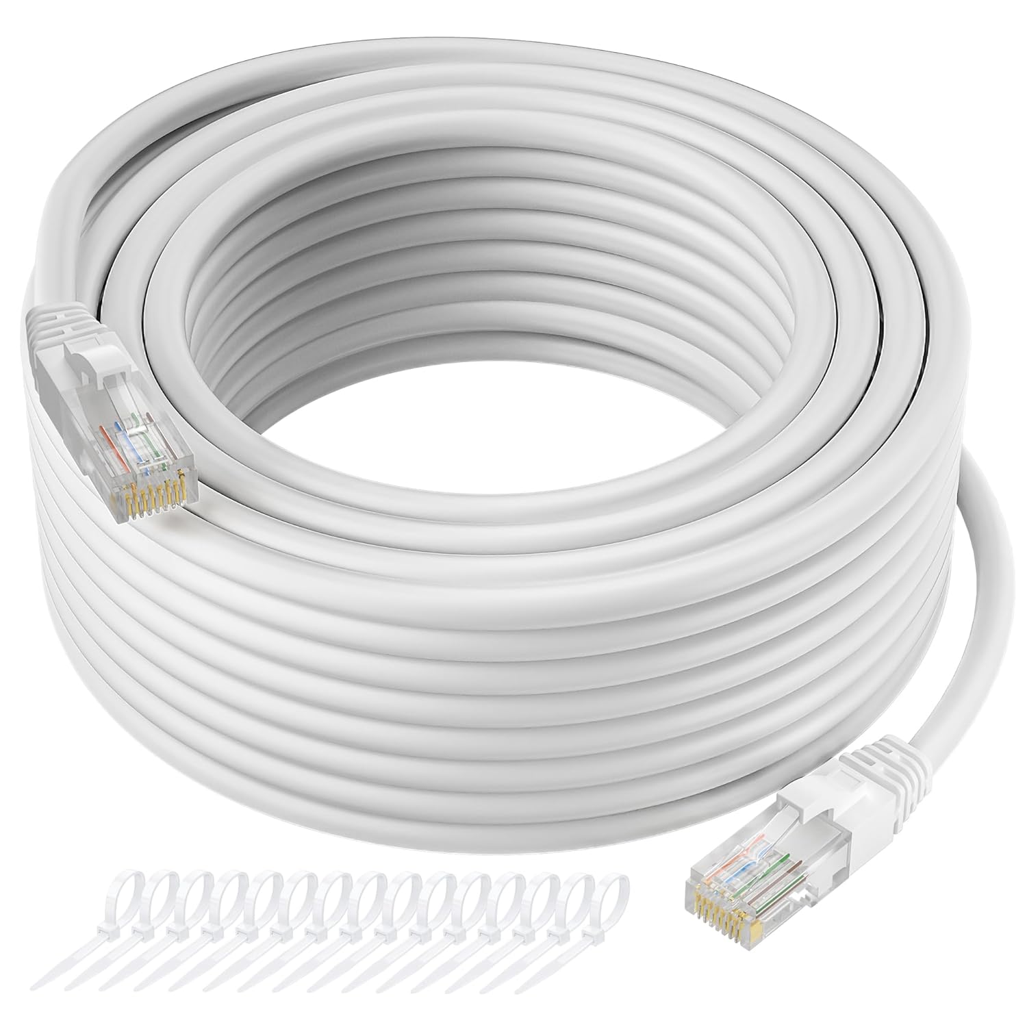 Cat5e Ethernet Cable 150 FT, Long Cat 5e Internet Cable, White Snagless Patch Cord, Flexible, Network, LAN, PoE, Standard RJ45 Connector for PC, Server, Router, Modem, TV, PS5 - with 15 Cable Ties