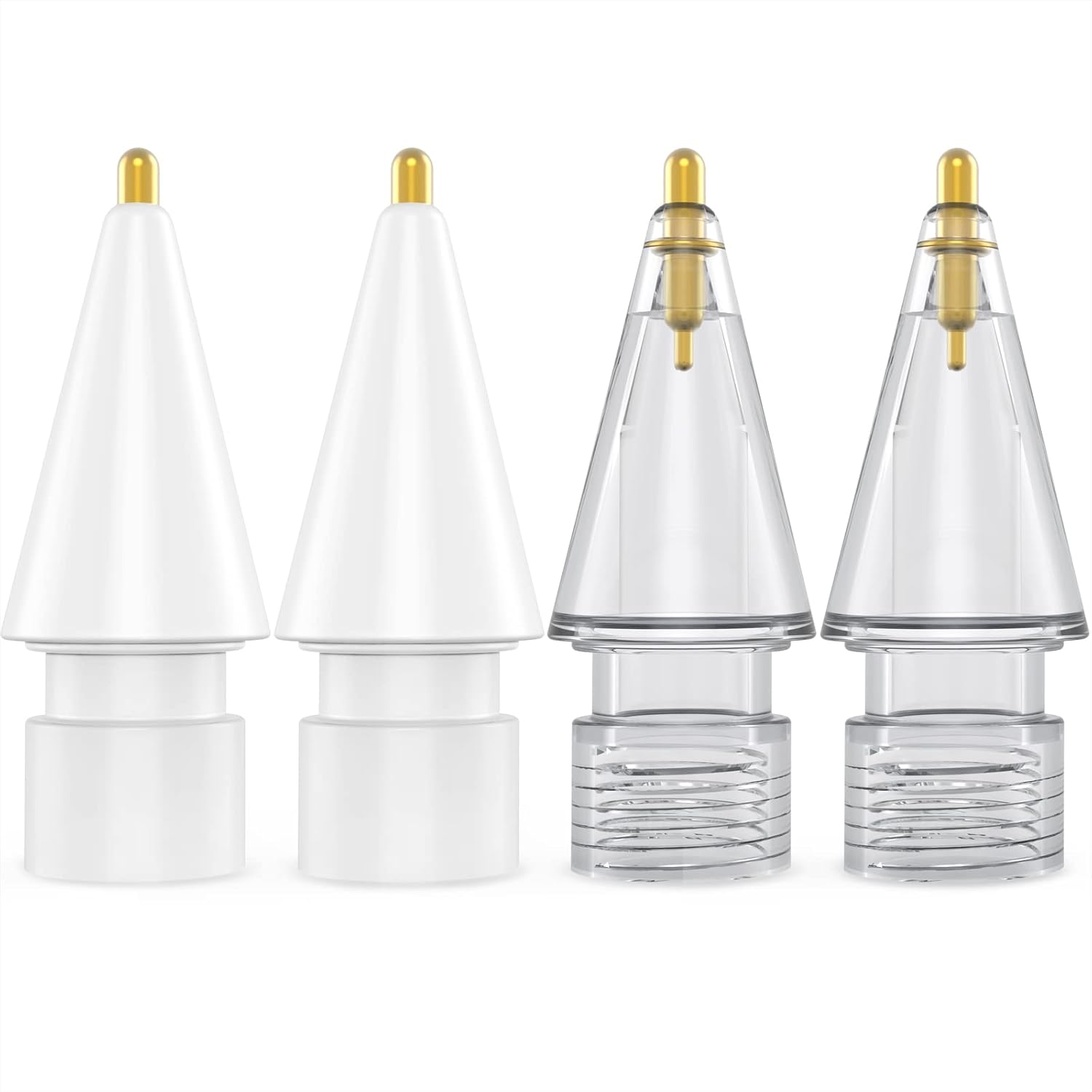 NIUTRENDZ 4 Pack Replacement Tips for Apple Pencil 2nd Generation and 1st Generation Fine Point Metal Tip, Wear-Resistant & Precise Control (1.95mm, White + Grey)