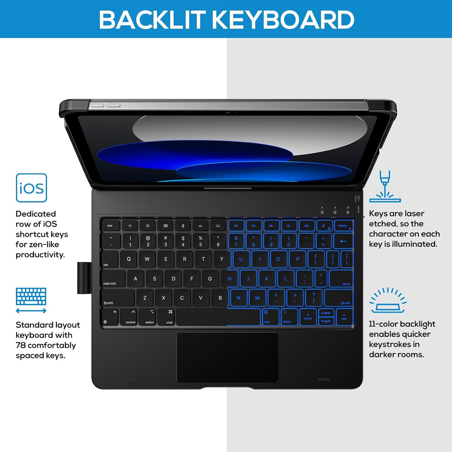 typecase Touch iPad 10th Generation Case with Keyboard (10.9", 2022) and iPad A16 (11th Gen, 2025) – 360° Rotatable, 11-Color Backlit, Multi-Touch Trackpad, Thin & Light (Black)