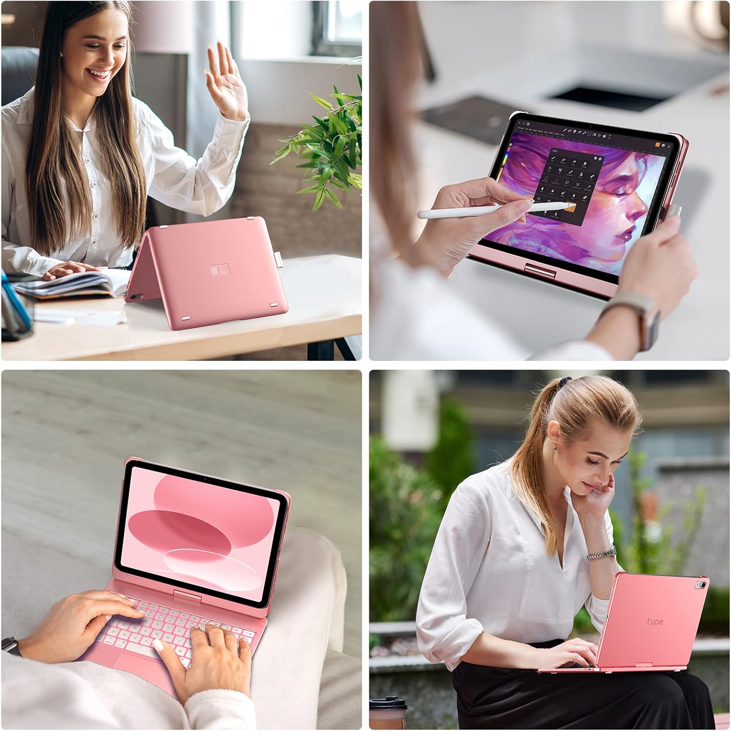 typecase Touch iPad 10th Generation Case with Keyboard (10.9", 2022) and iPad A16 (11th Gen, 2025) – 360° Rotatable, 11-Color Backlit, Multi-Touch Trackpad, Thin & Light (Rose Gold)