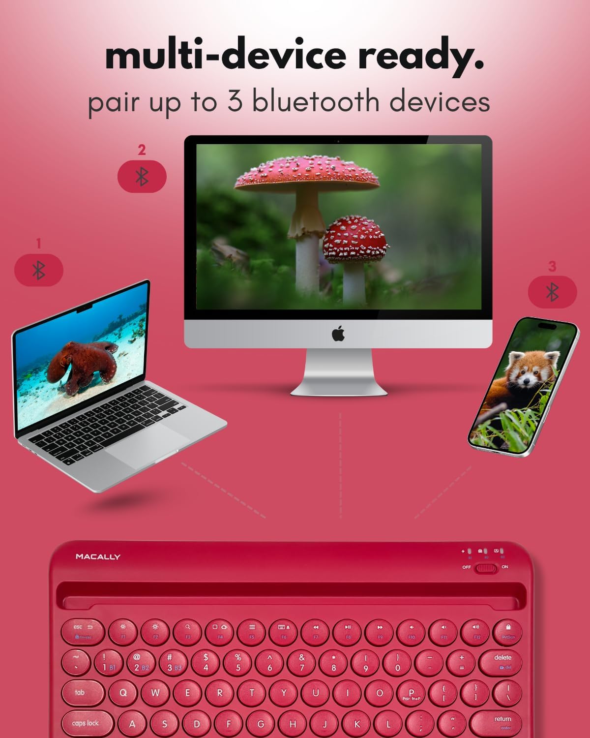 Macally Bluetooth Tablet Keyboard - Multi Device Wireless Keyboard for Phone, iPad mini/Pro, Android - Rechargeable with Built in Stand and Quiet Keys