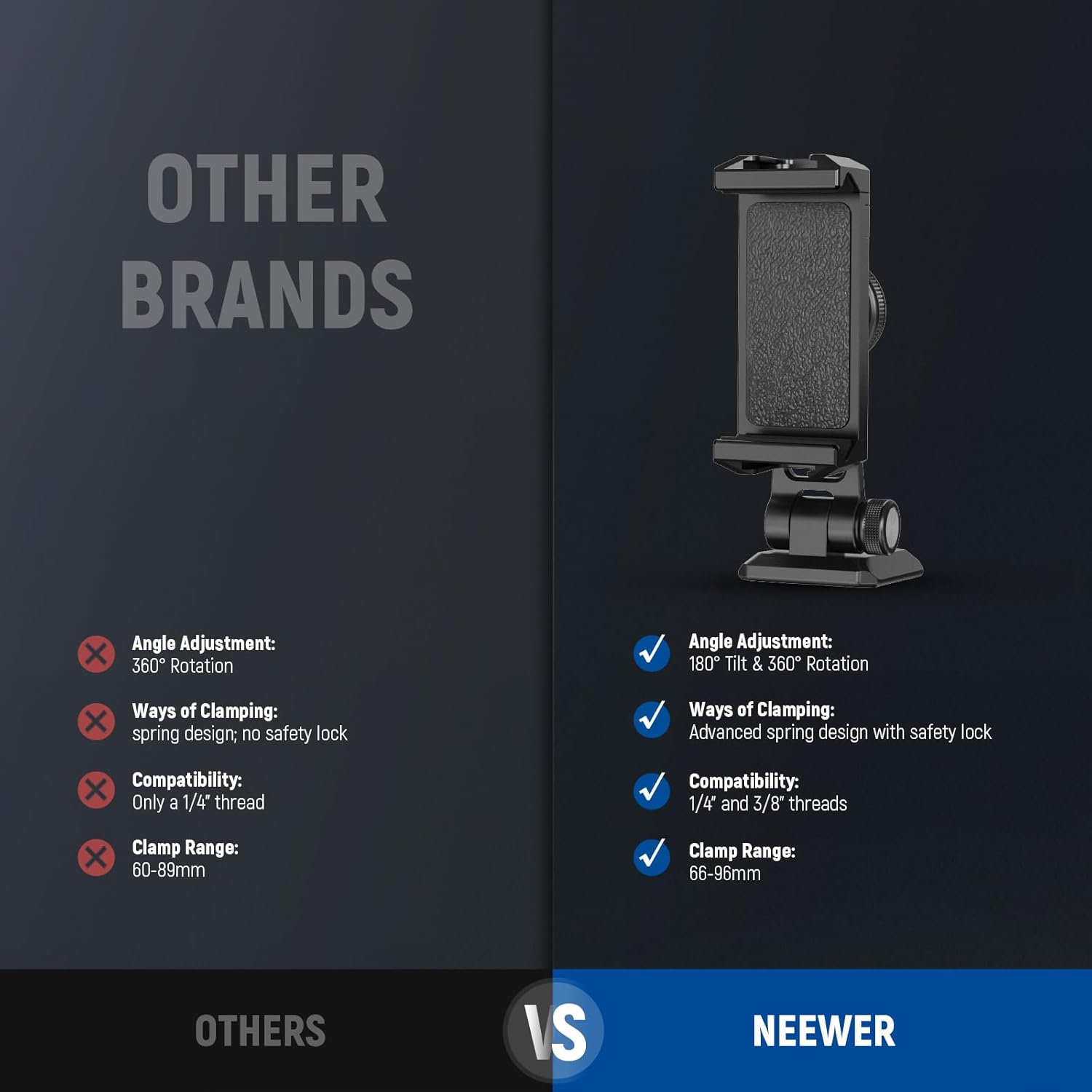 NEEWER Metal Phone Tripod Mount Adapter with Arca QR Base, Cold Shoe, 360° Swivel 180° Tilt, Phone Holder Compatible with iPhone 15 Pro Max Galaxy S24