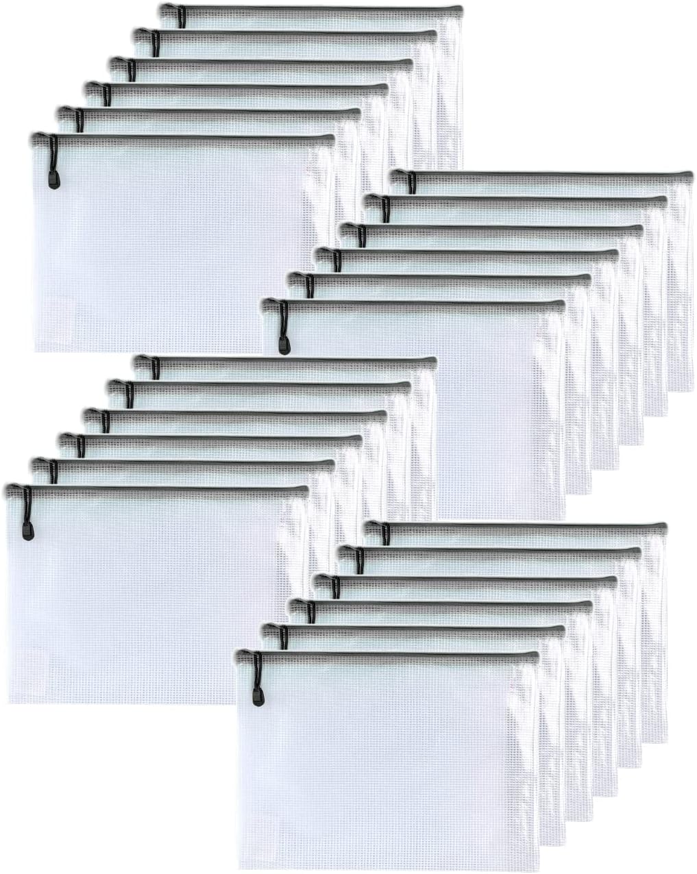 Oaimyy-24PCS-3 x 5" inchs-Mesh Zipper Pouch, Plastic Zip File Folders Puzzle Bags for Organizing,Office Supplies,Travel,Home Storage-Black