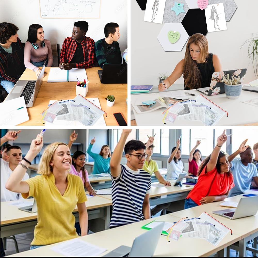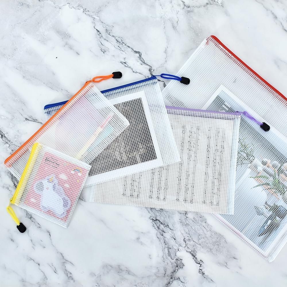 - Package Included : 34pcs colors zipper organizer bags. 4*B4 (15 x 11 inches), 4*A4 (13 x 9.3 inches), 4*B5 (11 x 7.9 inches), 4*A5 (9 x 6.9 inches), 4*B6 (7.7 x 5.7 inches), 4*A6 (6.9 x 4.5 inches), 6*Bills (9.3 x 4.7 inches), 4*B8 (5.1 x 4.5 inches).