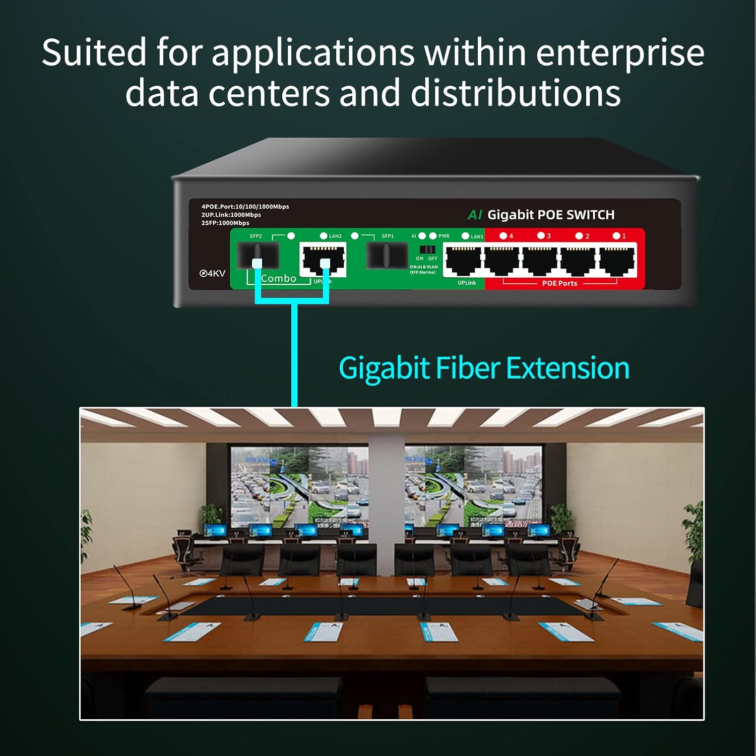 - 【Flexible Full Gigabit 8-Port PoE Configuration】4*PoE+ (802.3at/af) 10/100/1000 Mbps RJ45 ports providing up to 30W per port and total PoE power budget of 65W, 2 Gigabit Ethernet RJ-45 uplink ports and 2 SFP ports.(Please note: SFP2 and LAN2 is 1 gigabit combo SFP uplink port, supporting both copper and optical SFP connections.You can use either an LAN2 port or an SFP2 port. But you can’t use both of them at the same time.)