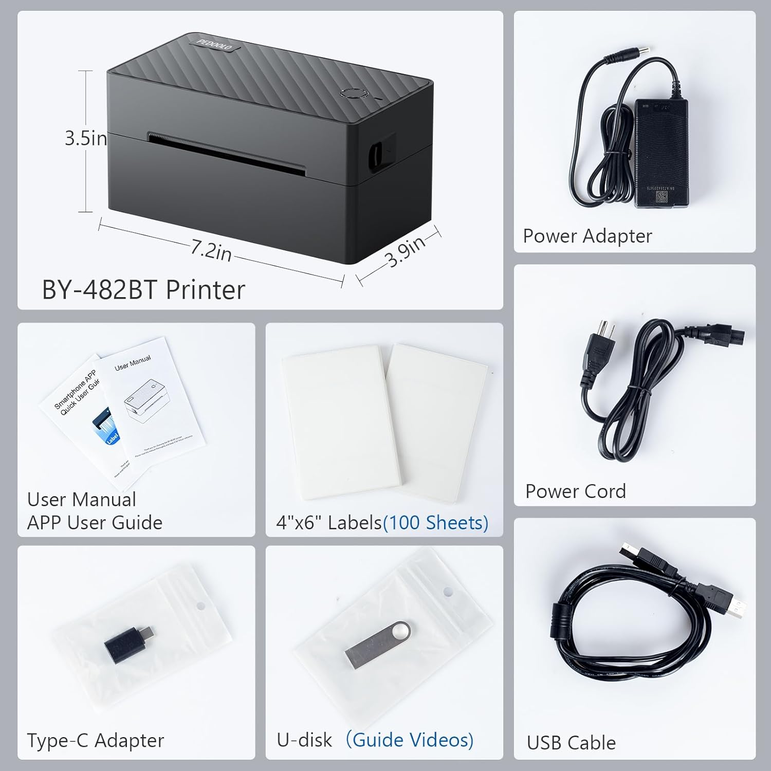 Label Printer, 4x6 Shipping Label Thermal Printer for Packages, Bluetooth Conection and Compatible with Android. iPhone.Windows, Mac, Chromebook, Amazon, Ebay, UPS.USPS, FedEx, Shopify