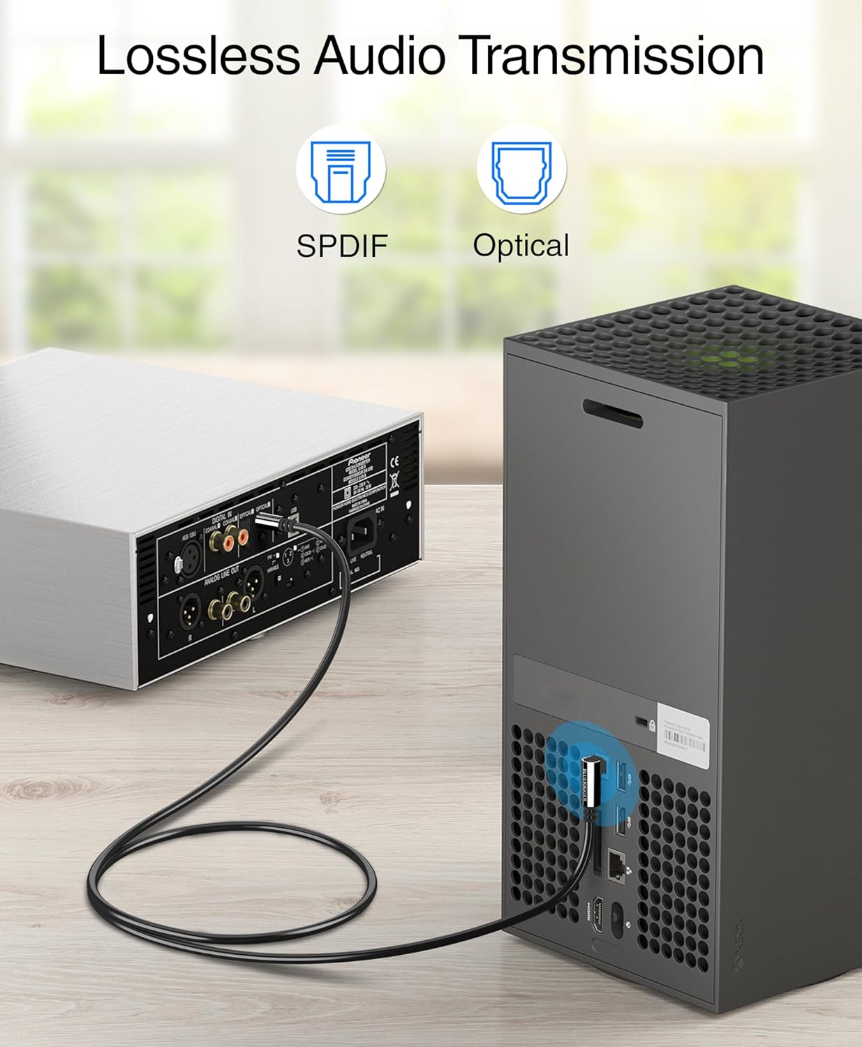 - ⤠DIGITAL OPTICAL AUDIO CABLE: BlueRigger digital optical audio cable supports crystal clear multi-channel surround sound, uncompressed PCM audio, compressed 5.1 to 7.1 surround sound systems (Dolby Digital Plus, DTS-HD, ADAT & LPCM), for an immersive audio experience