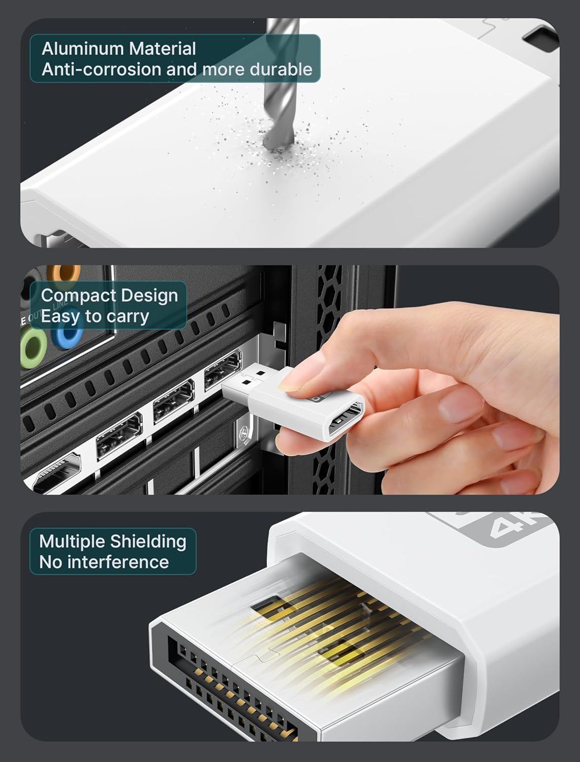 - 【Universal Compatibility】: This DisplayPort to HDMI converter is compatible with laptops (HP ProBook EliteBook, Lenovo ThinkPad), desktop tower (HP, Dell, Lenovo), GPU (AMD, NVIDIA), and other devices with a DisplayPort. Connect to TV, projector, monitor, VR headset, etc
