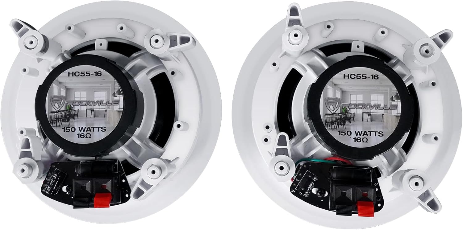 - Features of HC55 5.25” White: Pair of Rockville HC55 5.25” White 300 Watt 2-Way In-Ceiling Home Theater Speakers. Peak Power Handling: 150 Watts (per speaker) / 300 Watts (per pair). RMS Power Handling: 60 Watts (per speaker) / 120 Watts (per pair). Polypropylene Cone. Rubber Surround. 5.25” Woofer. 1” Aluminum Voice Coil. ½” Mylar Dome Tweeter. 8 oz. Ferrite Magnet. High Quality Spring Loaded Push Terminals
