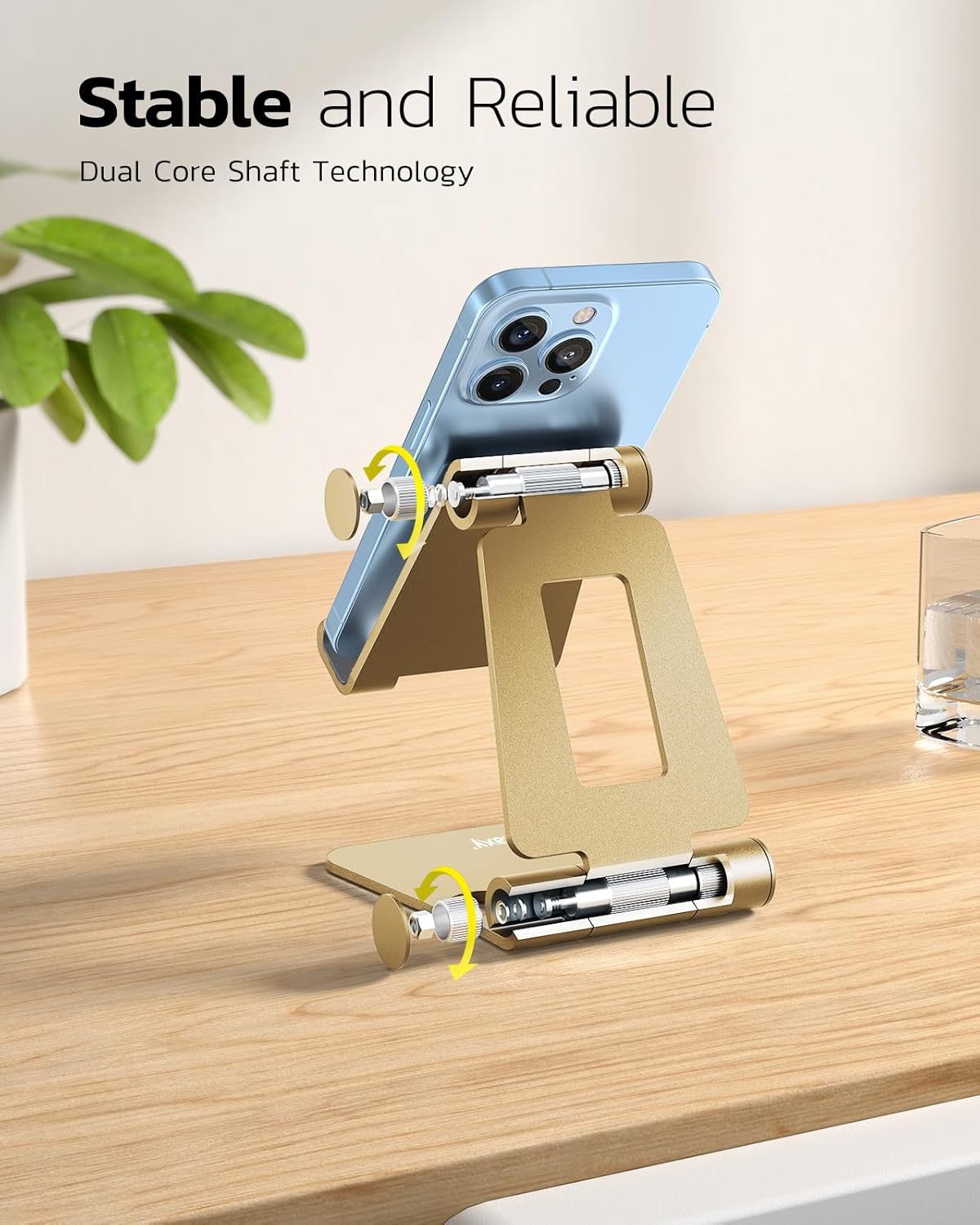Nulaxy Dual Folding Cell Phone Stand, Fully Adjustable Foldable Desktop Phone Holder Cradle Dock Compatible with Phone 16 15 14 13 12 11 Pro Xs Xs Max Xr X 8, Nintendo Switch, All Phones - Gold