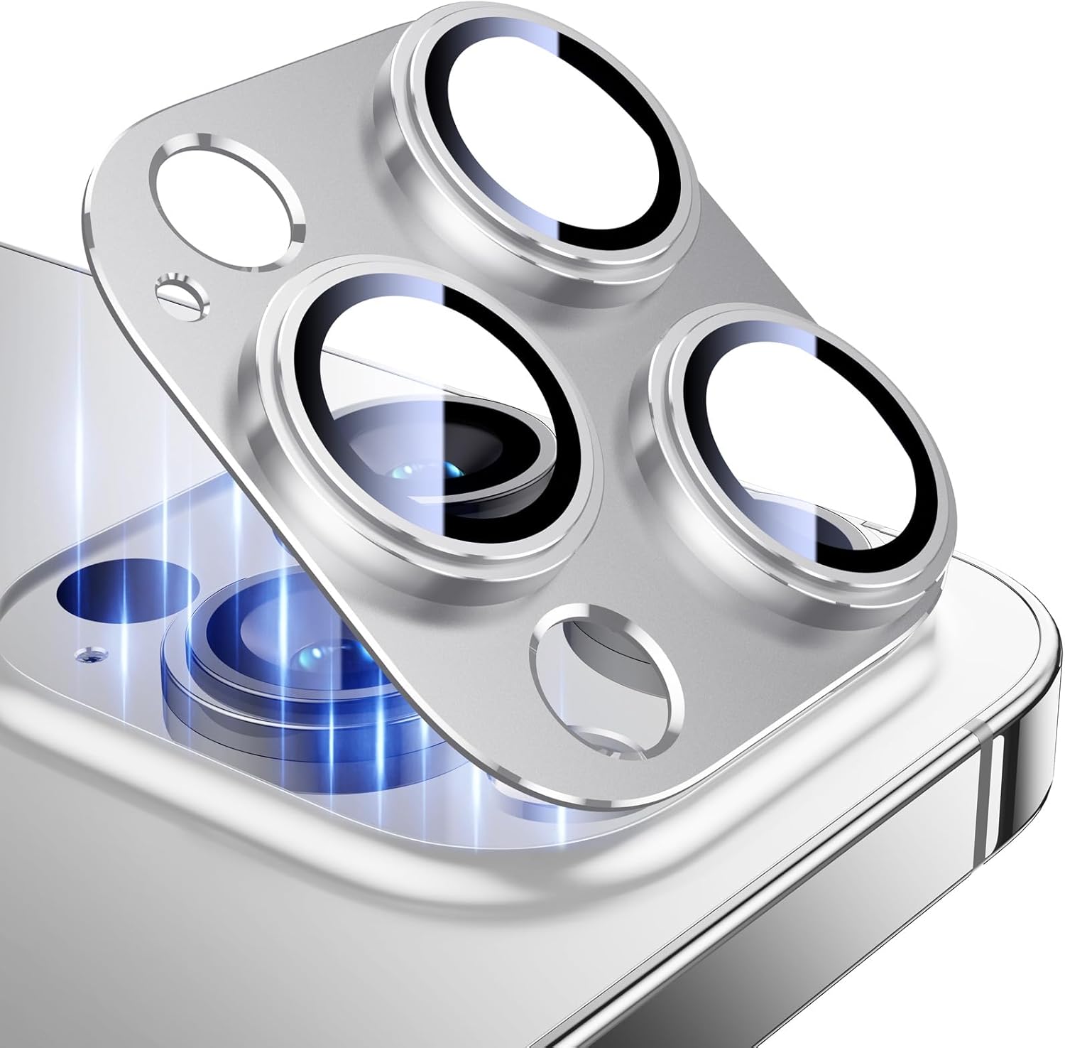 Esanik 2023 Upgrade 2 Pack for iPhone 14 Pro/iPhone 14 Pro Max Camera Lens Protector, Aluminum Alloy Metal matte Case Tempered Glass Camera Screen Cover, Scratch Resistant Case Friendly (Silver)