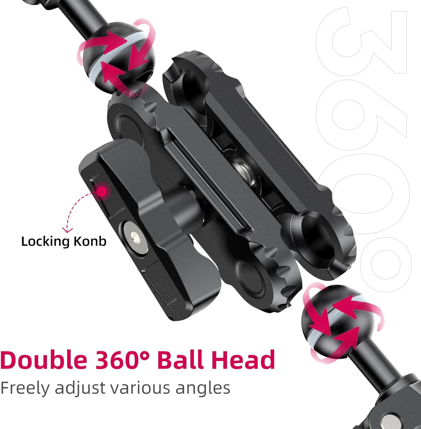 - ▶【360-degree Rotation】The double-headed clamp of the magic arm can be adjusted 360 degrees. With three T shape bars, you can freely adjust the position of the clamp by adjusting the knob. Maximum load capacity: 1.5kg/3.3LB.