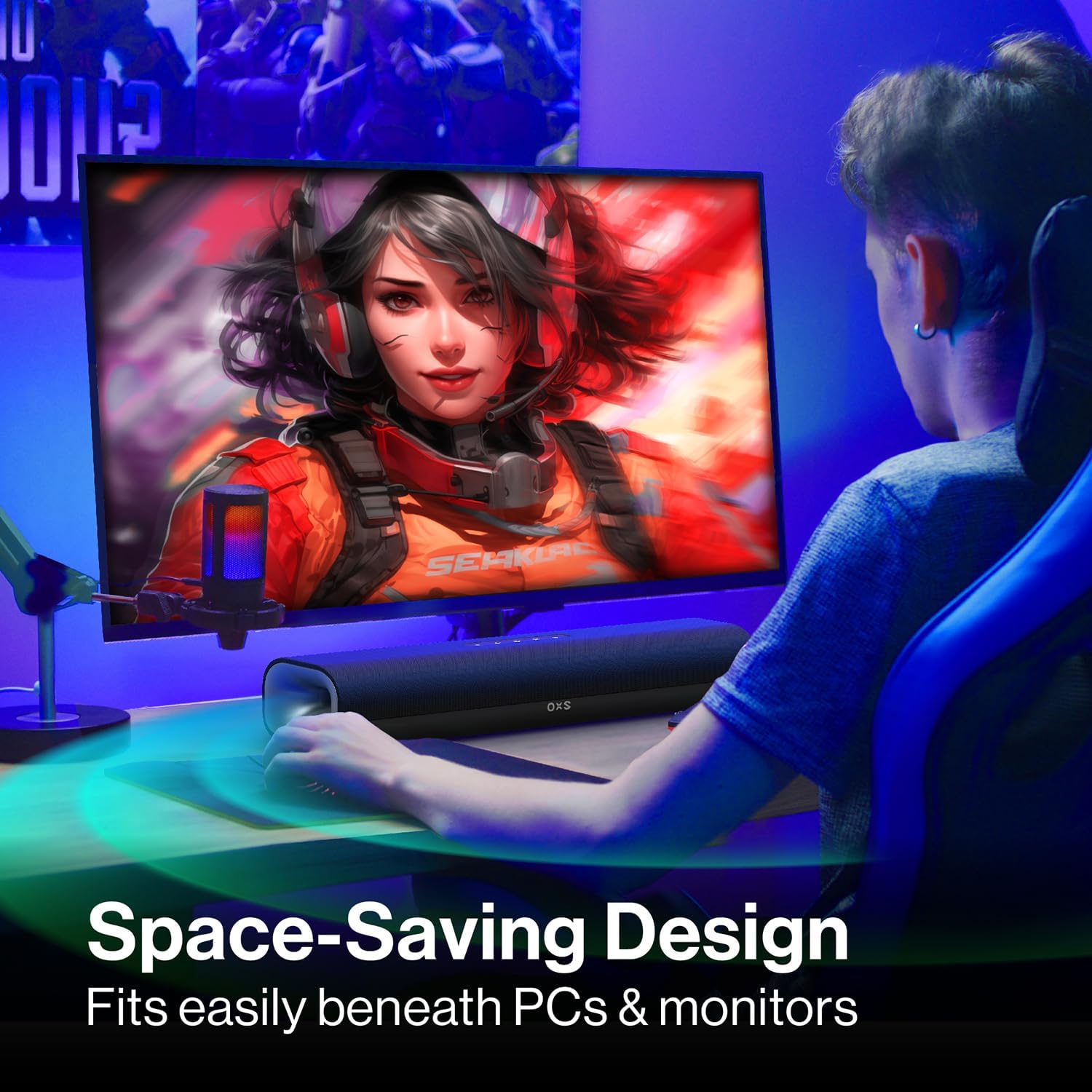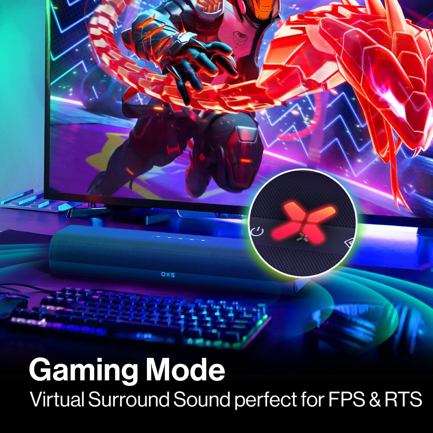 OXS Thunder Lite PC Gaming Soundbar, Sound Bars for TV with Virtual Surround Sound, 2 Full-Range Drivers, Bass Tube, Compact Design, HDMI/AUX/Optical Compatible, Bluetooth 5.0 Wireless Connection