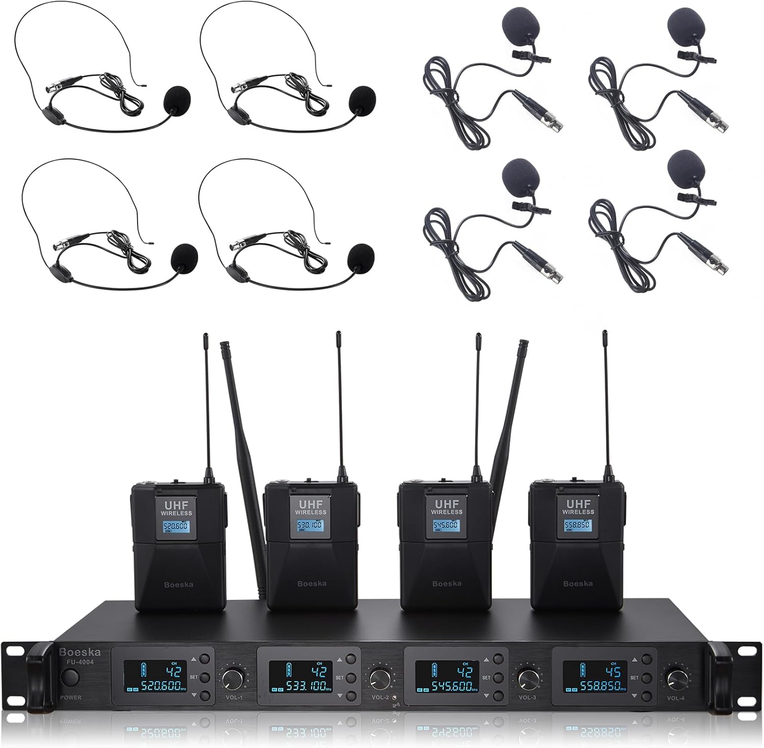 - WHAT YOU GET: This package includes 1*Receiver, 4*Wireless Headset Microphones, 4*Wireless Lavalier Microphones, 4*Bodypack Transmitters, 1*Power Adapter, 1*User Manual. Please note that batteries are NOT included
