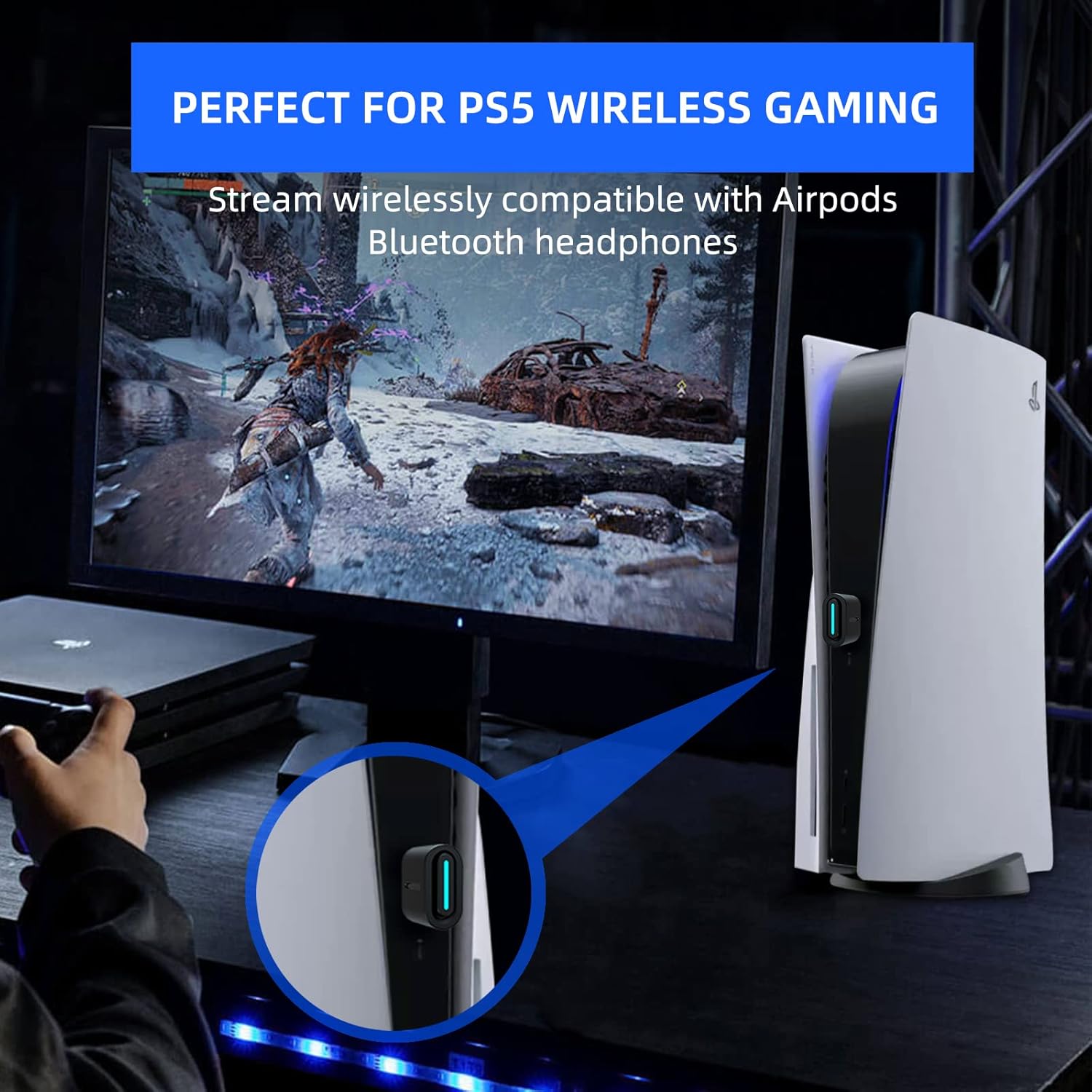 - Wide Compatibility: The Bluetooth Audio Adapter adapter is designed to work with a wide range of devices, and makes it simple for previously unsupported devices to now have Bluetooth capability. Easily transmit audio wirelessly from your USB ported PS5,Mac,Switch,or PC/Laptop to your Bluetooth headphones or speaker.
