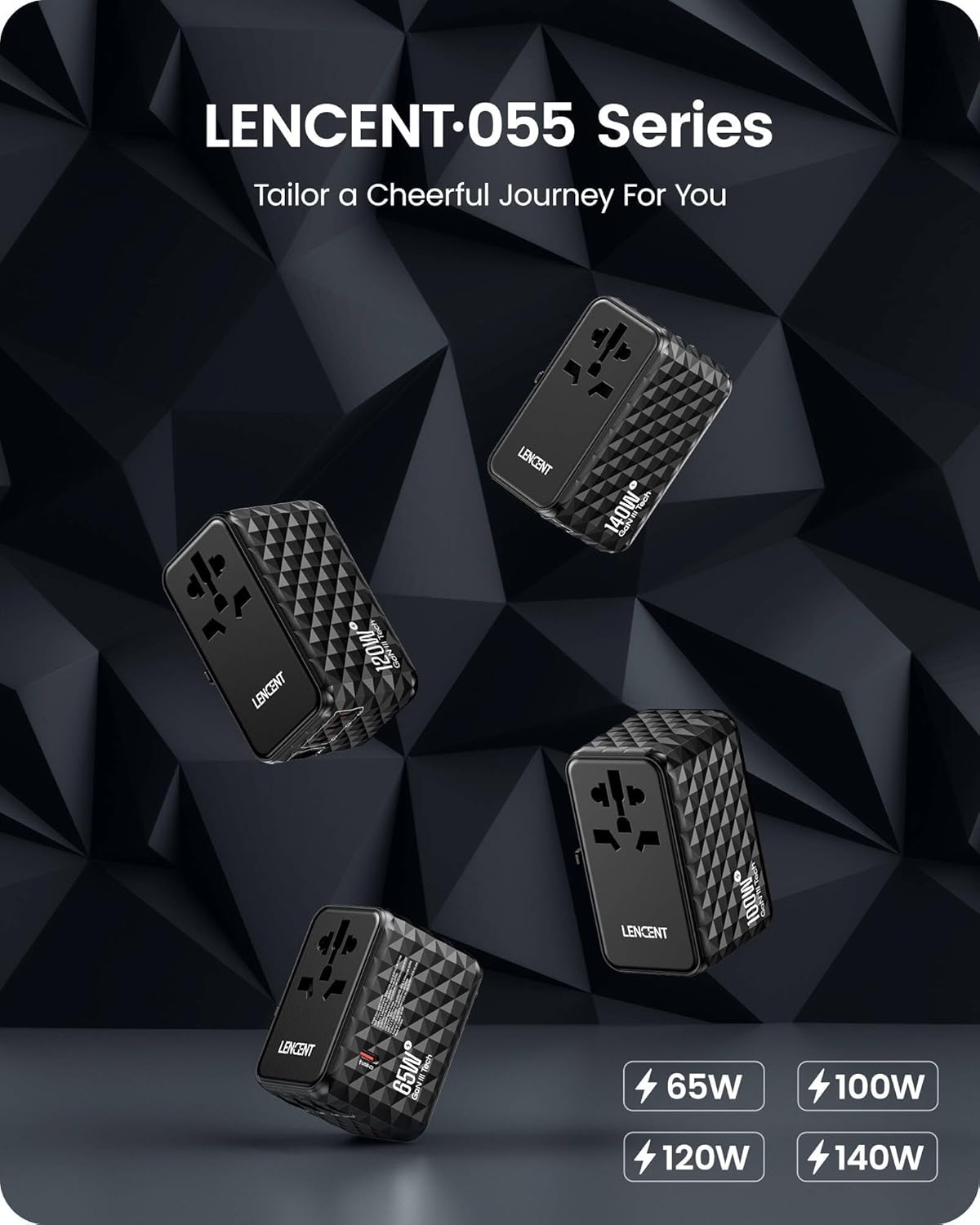 LENCENT 100W International Travel Adapter, GaN Universal Travel Adapter with 2 USB-A & 2 Type C Power Adapter, Fast Charger for Phone,Laptops, Worldwide Plug Adapter for USA/UK/EU/AUS, Black