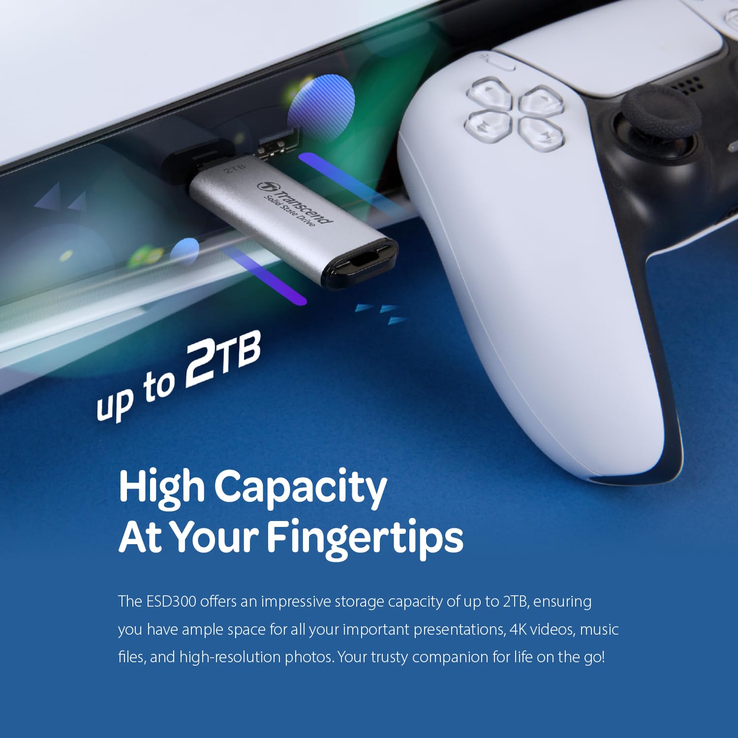 - High Capacity Options: Offering storage capacities of up to 2TB, the ESD300 provides ample space for important presentations, 4K videos, music files, and high-resolution photos.