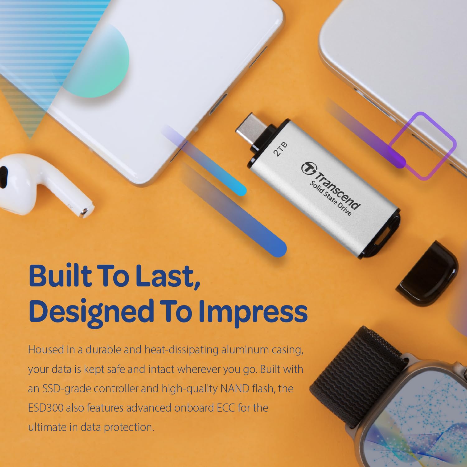 - High-Speed Data Transfer: With a USB 10Gbps transfer rate and SLC Cache technology, the ESD300 delivers read and write speeds of up to 1,050 MB/s and 950 MB/s, respectively.