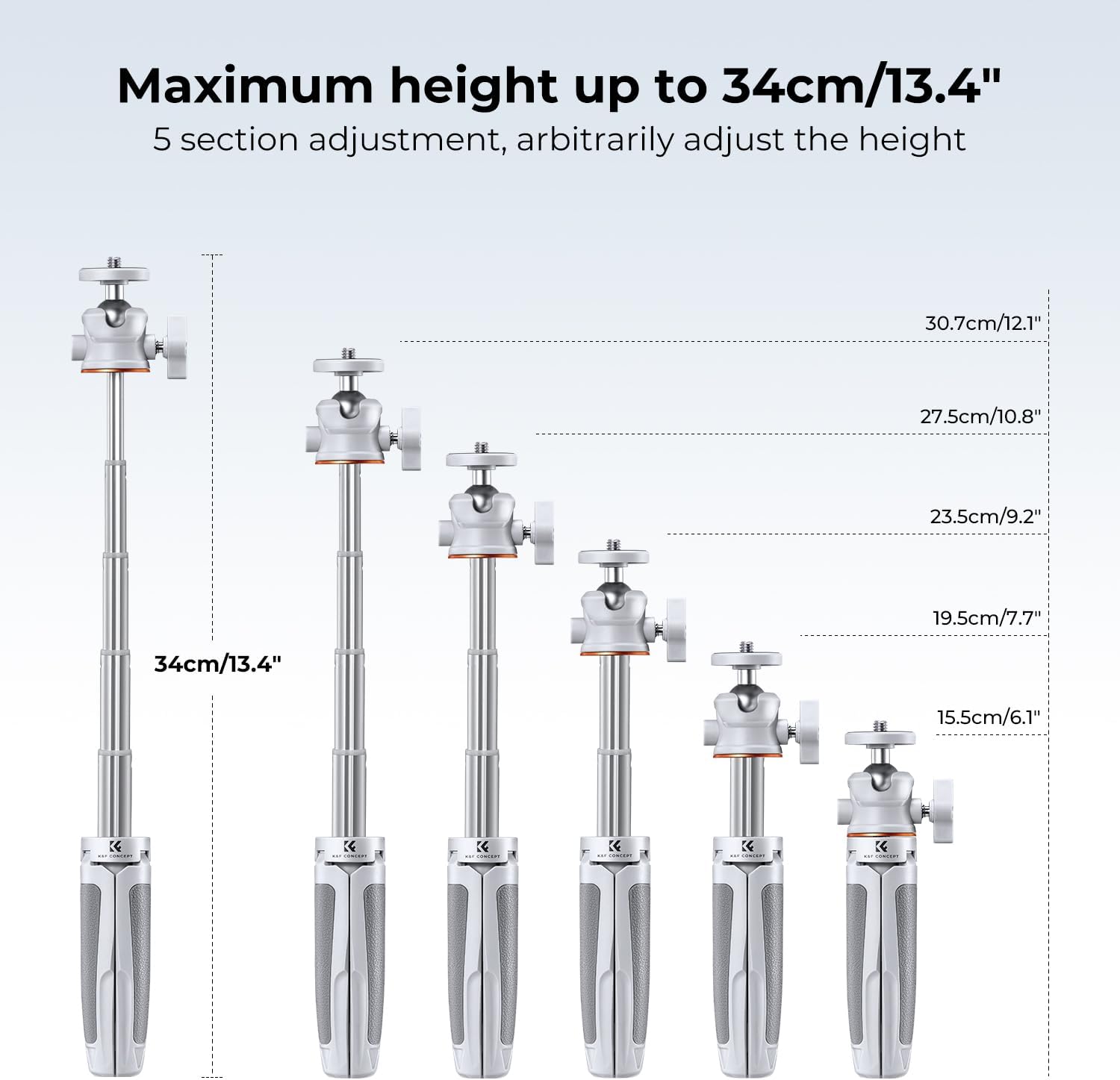 - Extendable & Adjustable: Capture the perfect shot with a flexible height range of up to 34cm. The five-section legs adapt to your preferred shooting position effortlessly, ensuring adaptability to your creativity.