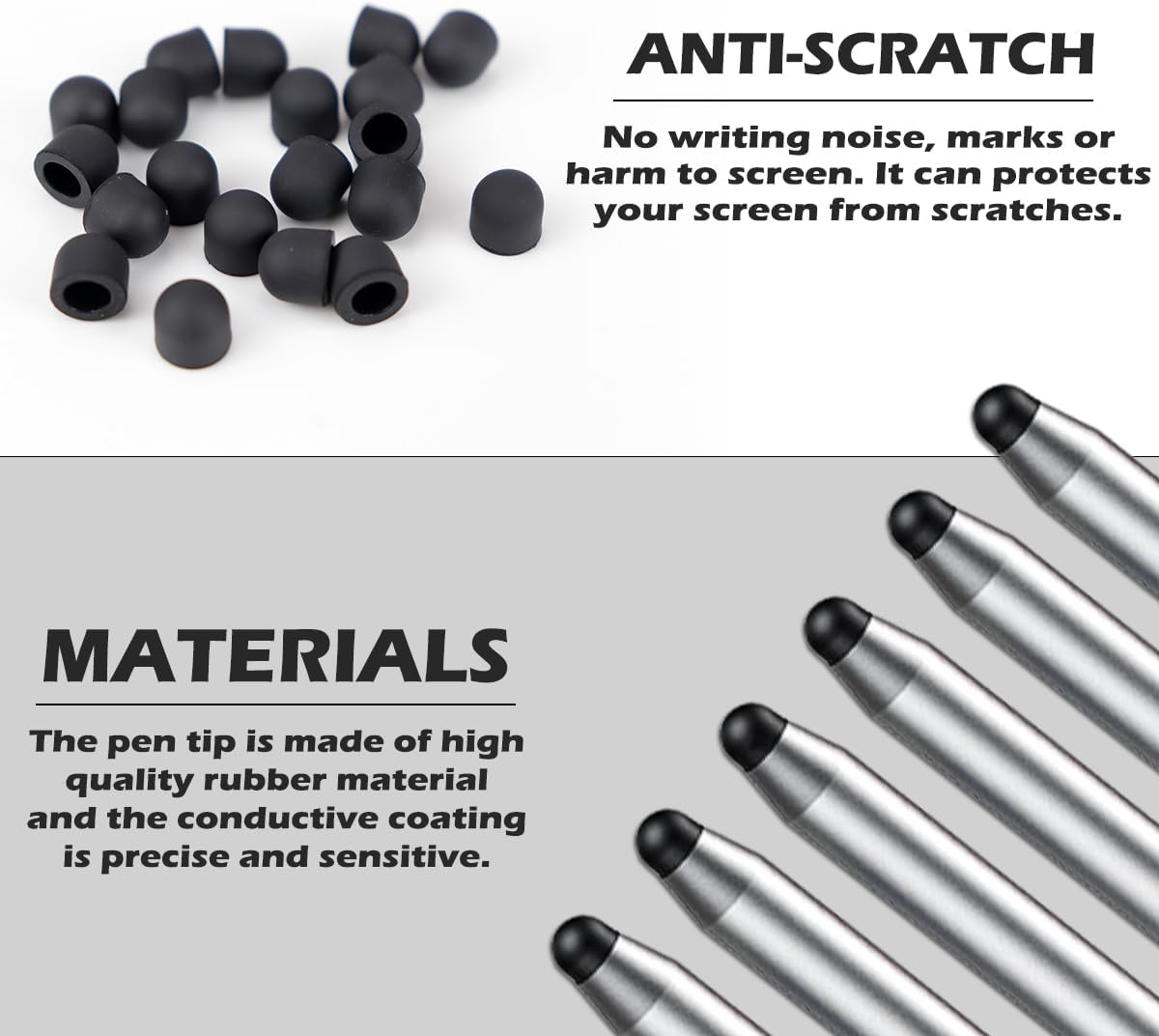 - Good Touch: The tips are made of high quality silicone material that does not make writing noise, scratch the screen surface or leave fingerprints.