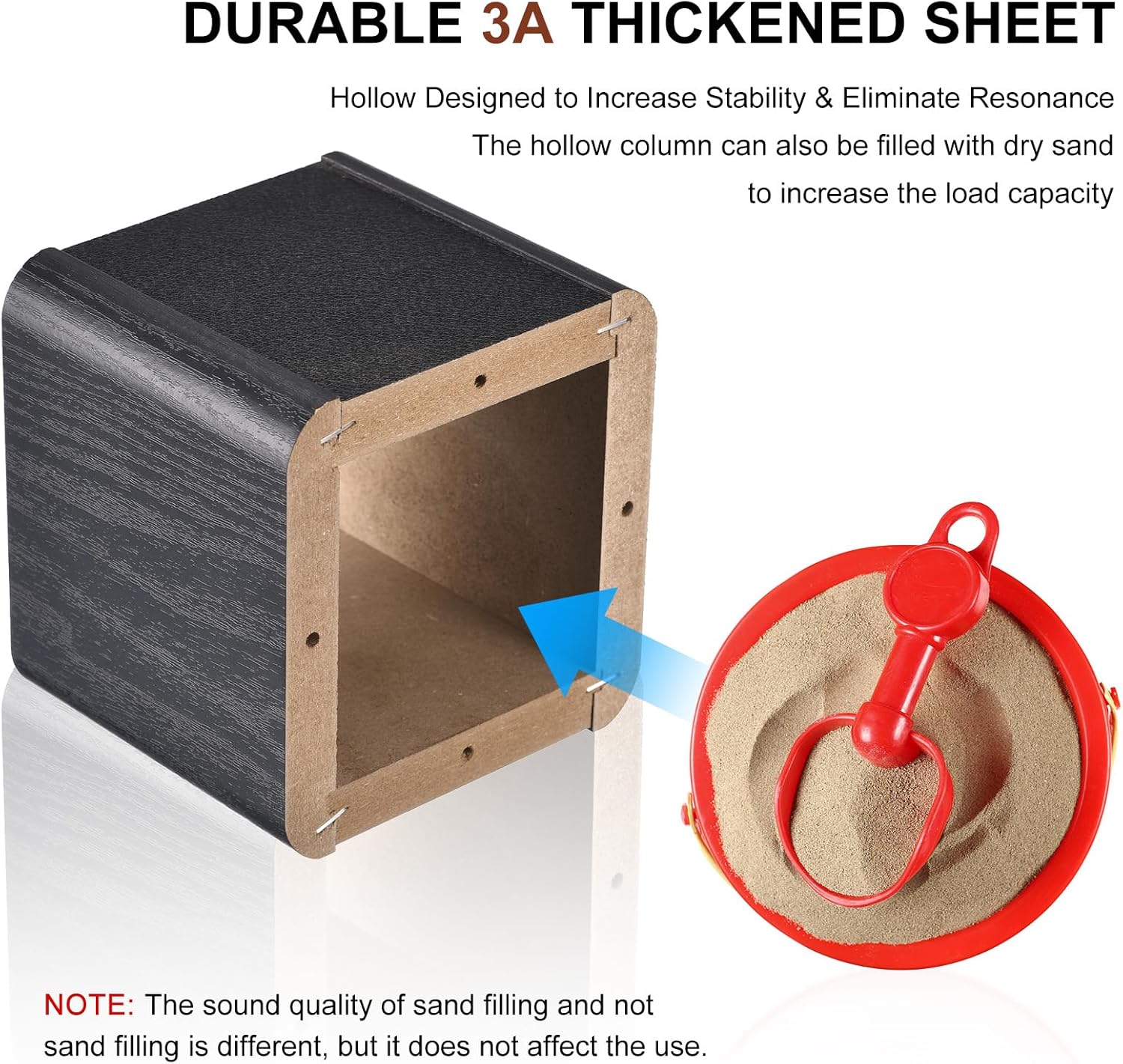 - Hollow Design: Our 5.9 inch (15cm) high bookshelf speaker stands adopt the hollow design increases stability and eliminates resonance and can also be filled with dry sand to increase the load capacity. (The sound quality of sand filling and not sand filling is different, but it does not affect the use.)