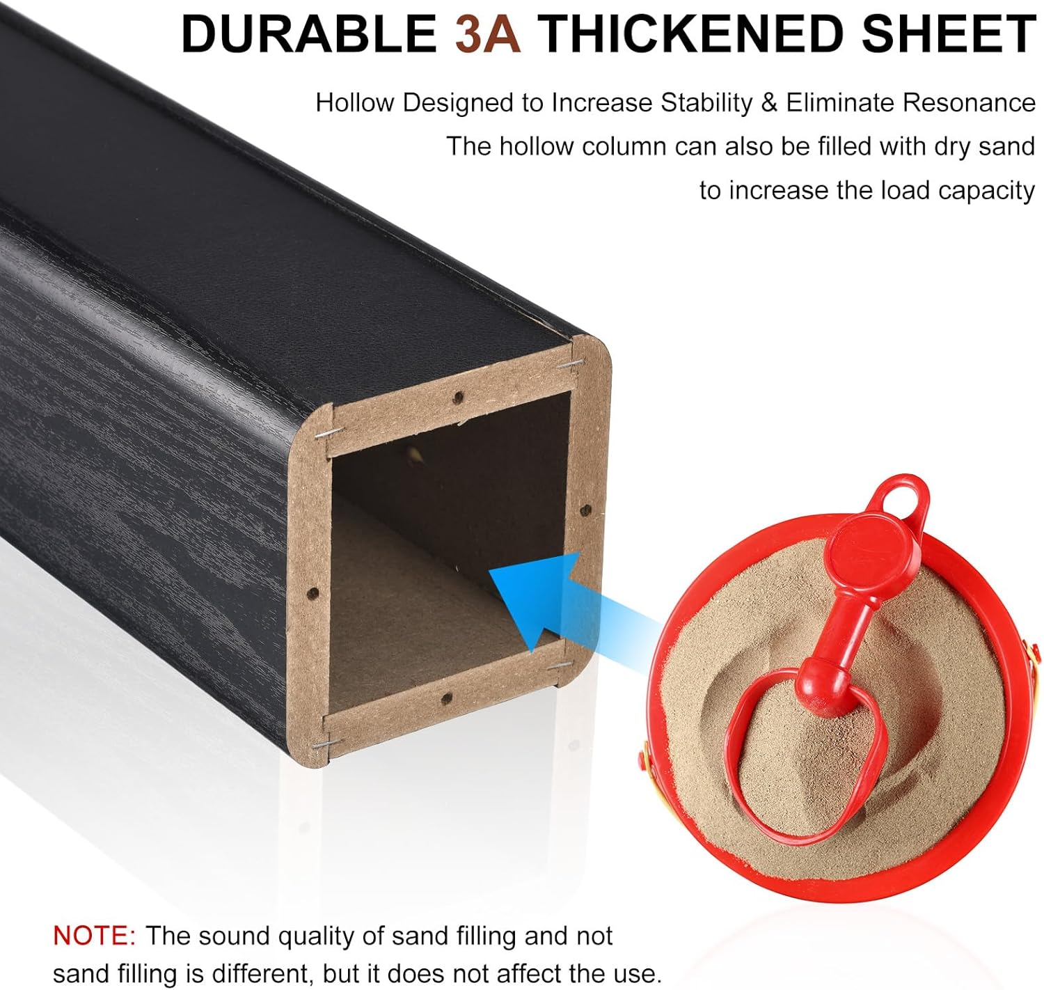 - Hollow Design: Our 15.7 inch (40cm) high bookshelf speaker stands adopt the hollow design increases stability and eliminates resonance and can also be filled with dry sand to increase the load capacity. (The sound quality of sand filling and not sand filling is different, but it does not affect the use.)