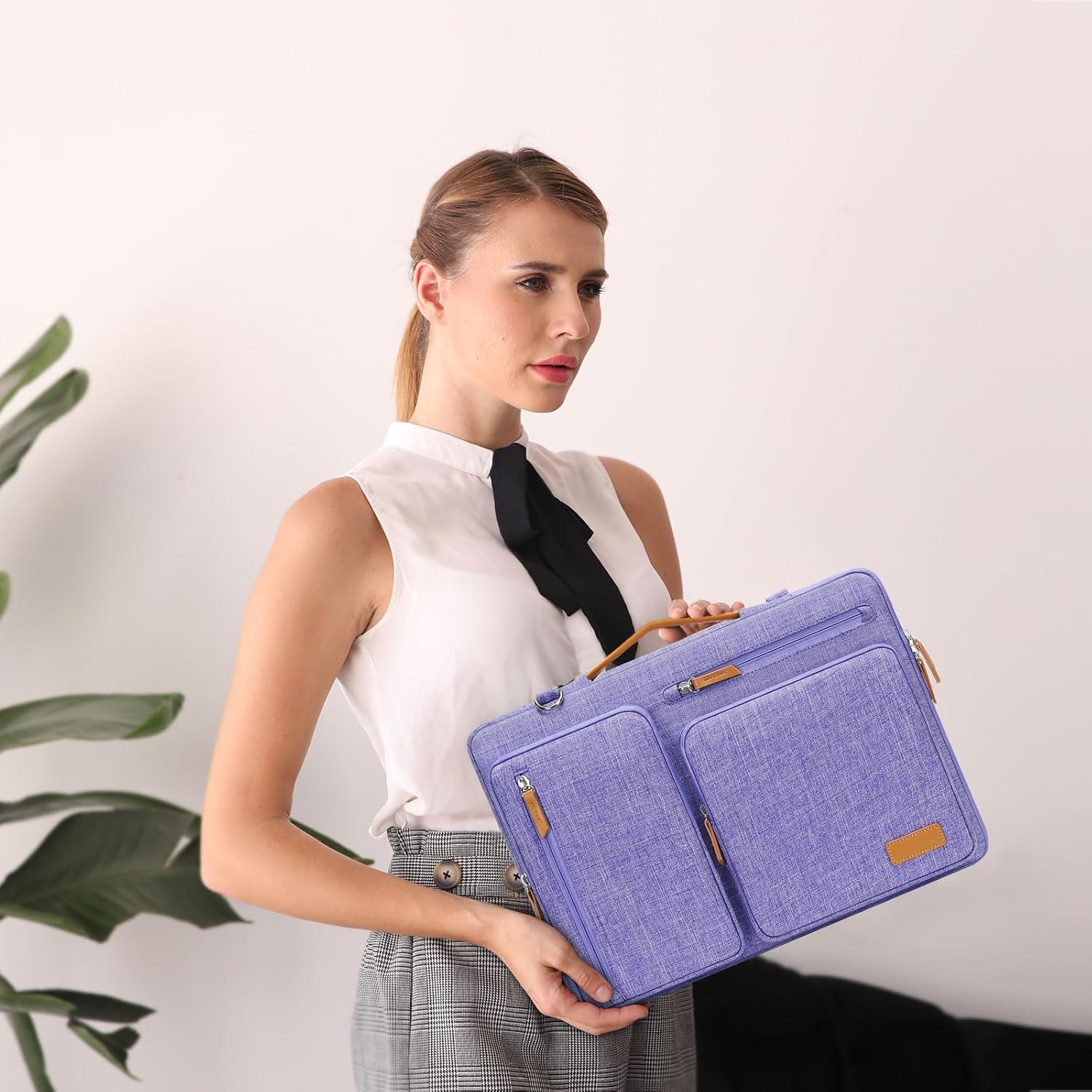 MOSISO 360 Protective Laptop Shoulder Bag,15-15.6 inch Computer Bags Compatible with MacBook Pro 16 inch, HP, Dell, Lenovo, Asus Notebook,Side Open Messenger Bag with 4 Zipper Pockets, Purple