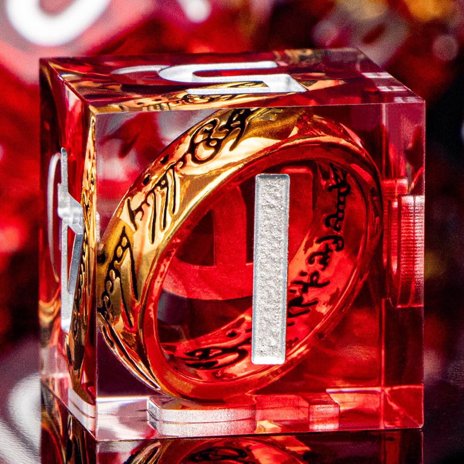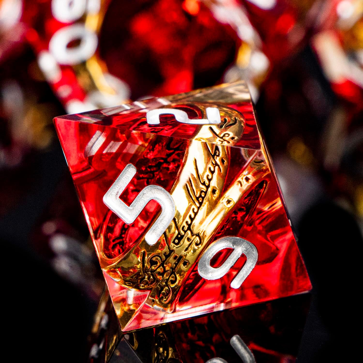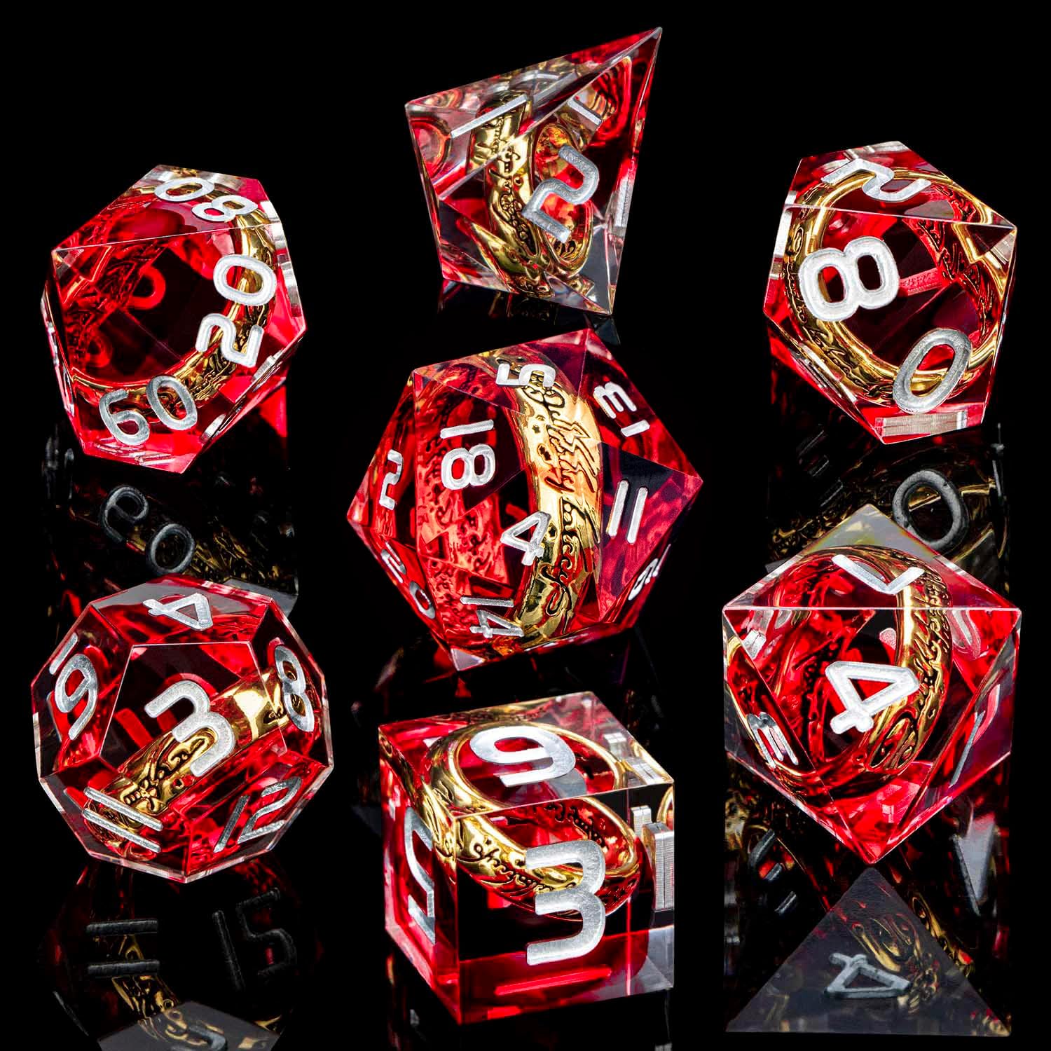 Magic Golden Ring DND Dice Set Sharp Edge Red Resin Dice with Box, for Use with D&D RPG Role Playing Games, Lord D and D Polyhedral Dice Set