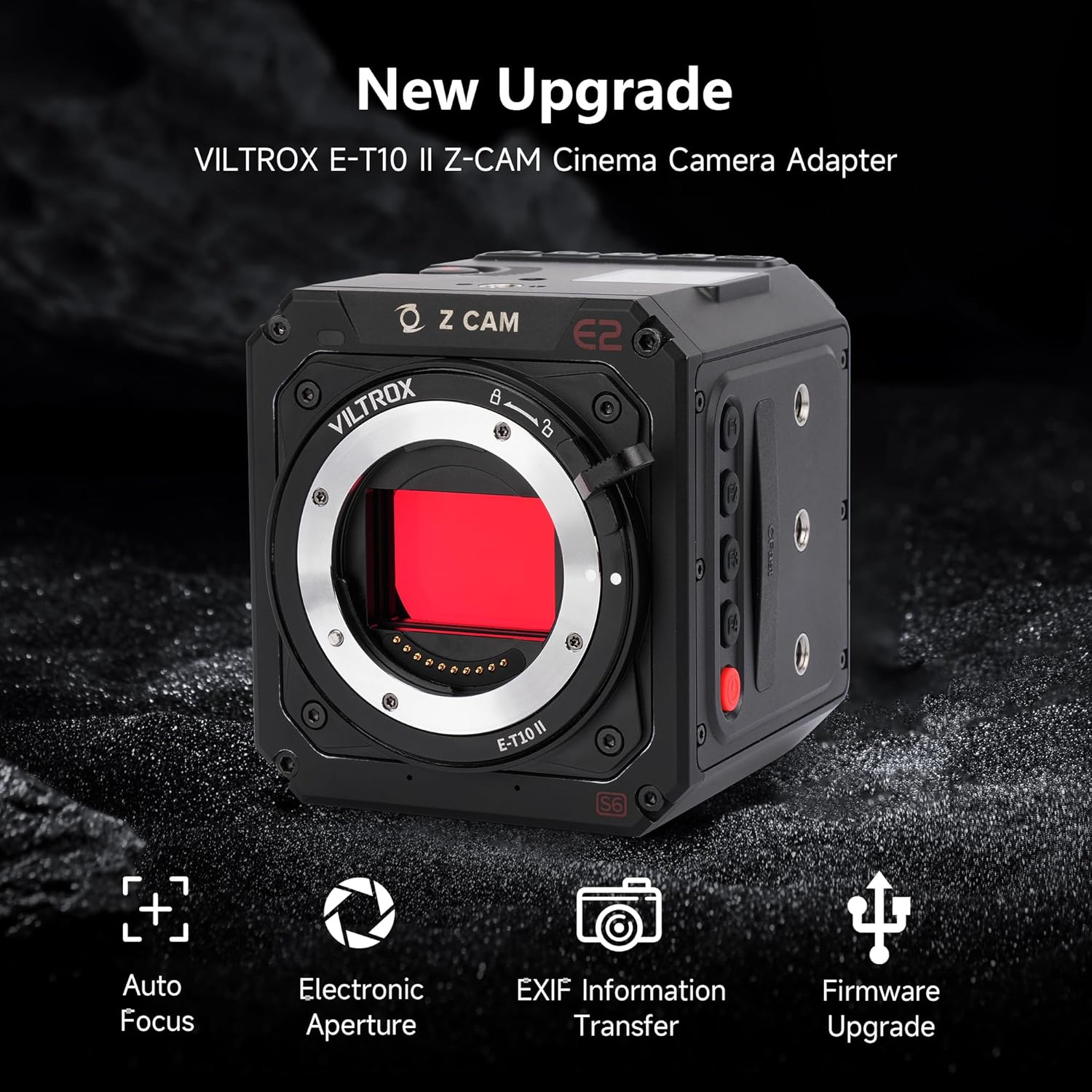 - Camera Lens Description : VILTROX E-T10 II Lens Mount Adapter Converter Compatible with E Mount Lens to Z-CAM E2-M4 E2-S6 E2-F6 E2-F8 Cinema Cameras VILTROX E-T10 II Lens Mount Adapter Converter Compatible with E Mount Lens to Z-CAM E2-M4 E2-S6 E2-F6 E2-F8 Cinema Cameras