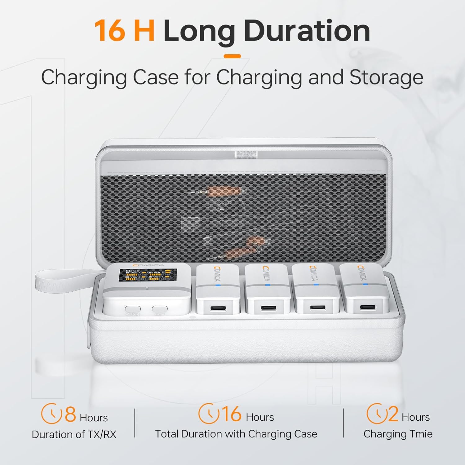 - Convenient Charging & Storing Case, 16-Hour Duration: The Vimo Q wireless microphone comes with a convenient charging case, ensuring easy portability. Each transmitter boasts 8 hours of battery life, providing a total battery life of up to 16 hours for extended and uninterrupted recording sessions.