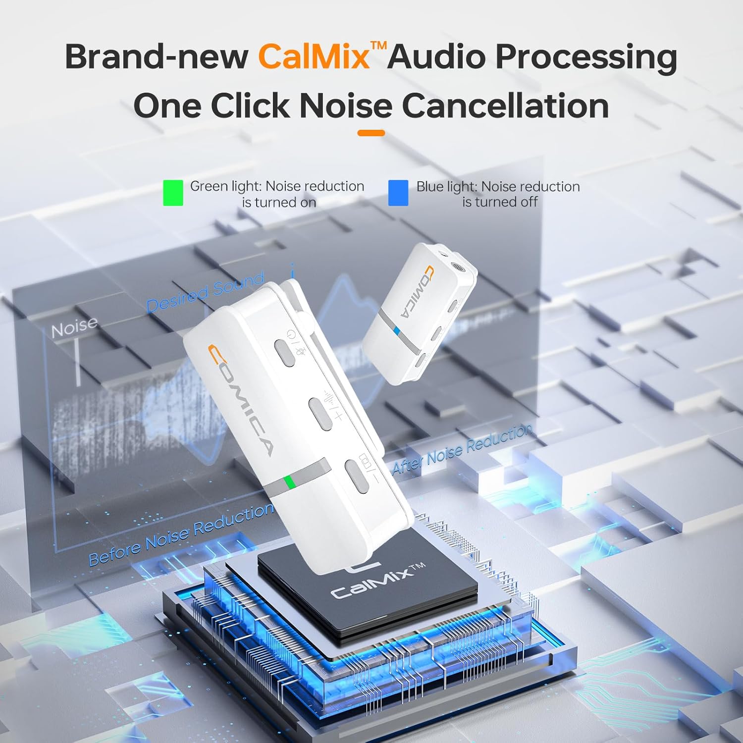 - Intelligent CalMix Noise Cancellation: Elevate your recordings by eliminating unwanted background noise. The Comica Vimo Q wireless lapel mic, featuring CalMix technology, intelligently identifies and filters out ambient sounds, delivering a pristine and immersive audio experience.