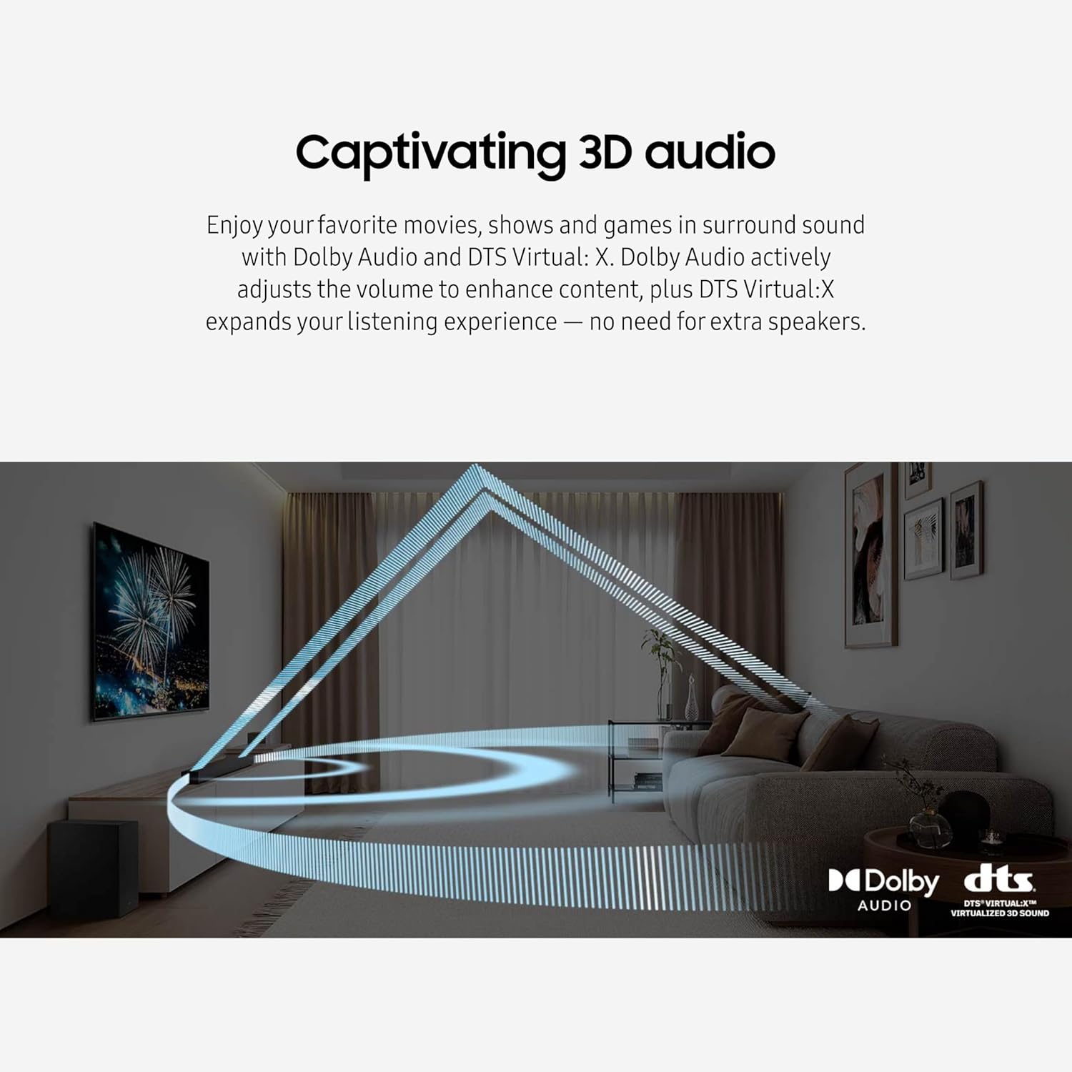 - DOLBY AUDIO / DTS VIRTUAL:X: Enjoy your favorite content in surround sound with Dolby Audio and DTS Virtual: X; Dolby Audio actively adjusts the volume to enhance content & DTS Virtual:X expands your listening experience–no need for extra speakers