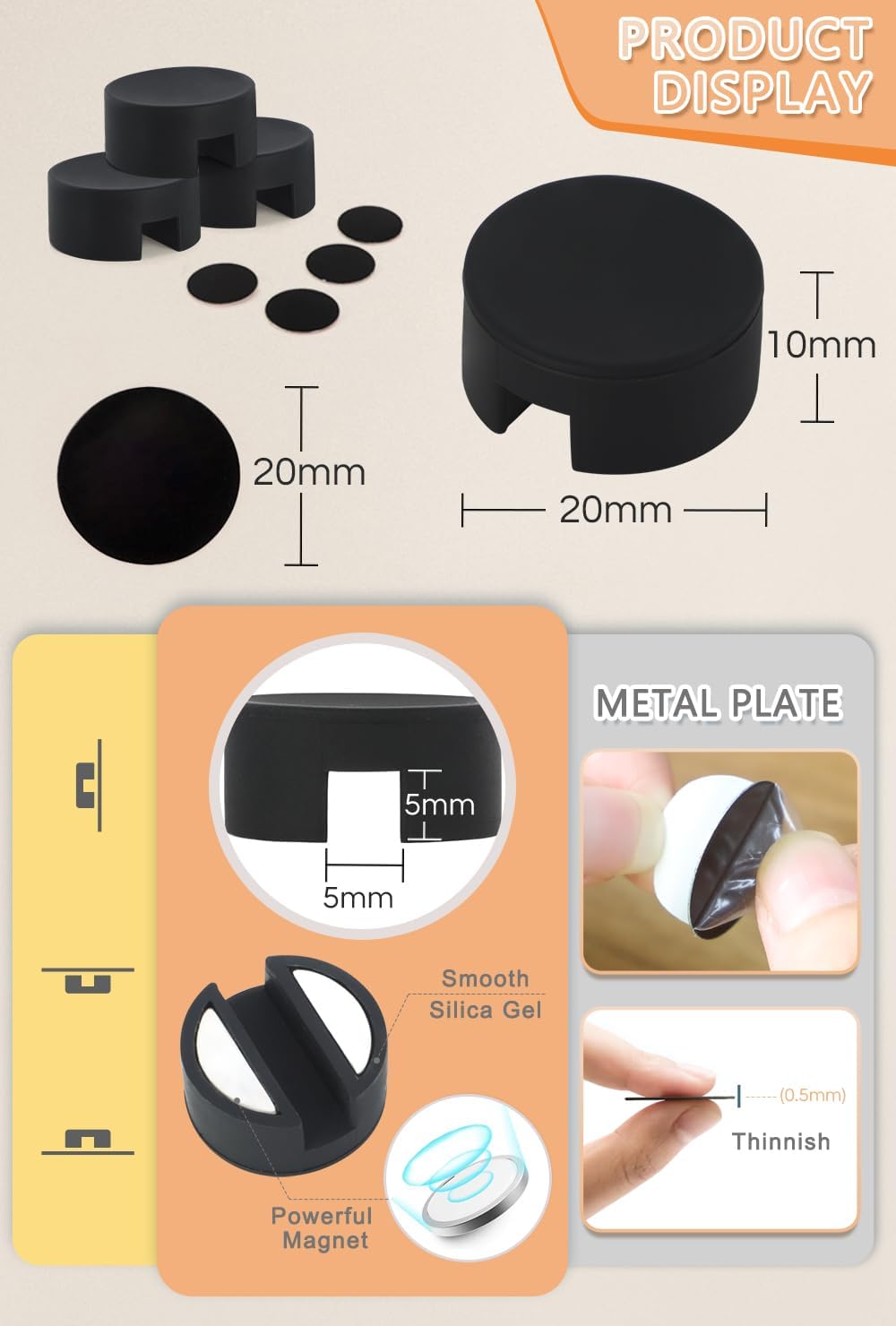 - 【Superior Material】The body is made of high quality silicone, which can support cables up to 0.2 inch (5 mm) in diameter. The overall product dimensions is 0.79''(L)*0.79''(W)*0.4''(H). Each magnetic cable clip contains 2 strong magnetic magnets, which can firmly attached even if you pull the cable.