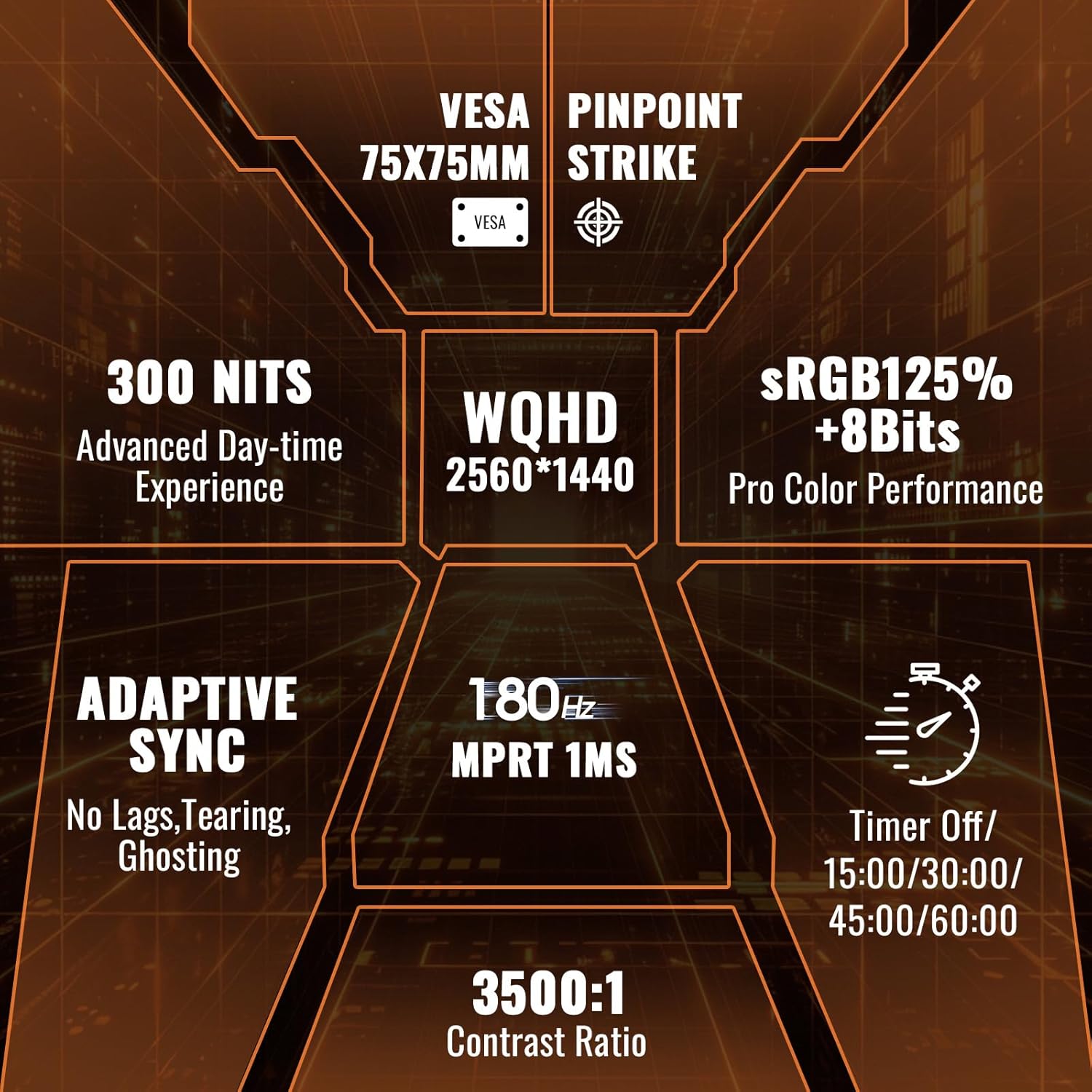 - Performance: 180Hz Refresh Rate | OD 1ms Response Time | FreeSync | Blue light reduction| Flicker-free