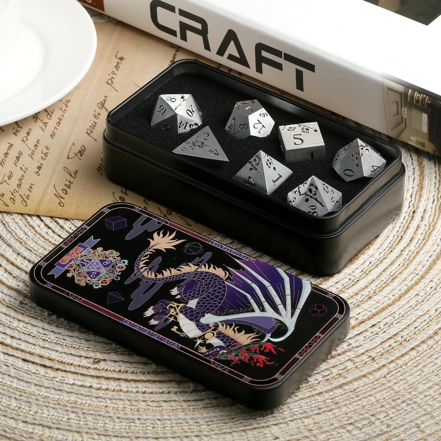 - Package:Gorgeous gift metal case with foam liner decorated with a gorgeous dragon and die.