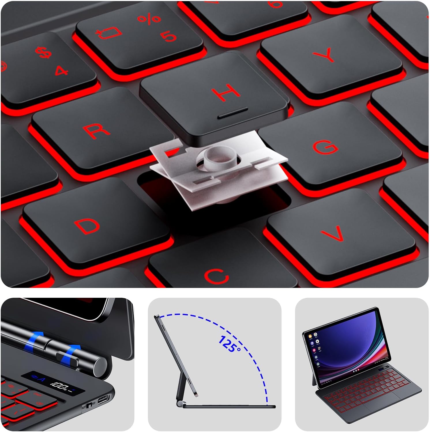 - Keyboard Description : Backlit Magic-Style Keyboard with Touch Trackpad and DEX Mode for Samsung Galaxy Tab S9 FE 10.9'' 11'', featuring 7 color backlight, adjustable brightness, breath rate Backlit Magic-Style Keyboard with Touch Trackpad and DEX Mode for Samsung Galaxy Tab S9 FE 10.9'' 11'', featuring 7 color backlight, adjustable brightness, breath rate