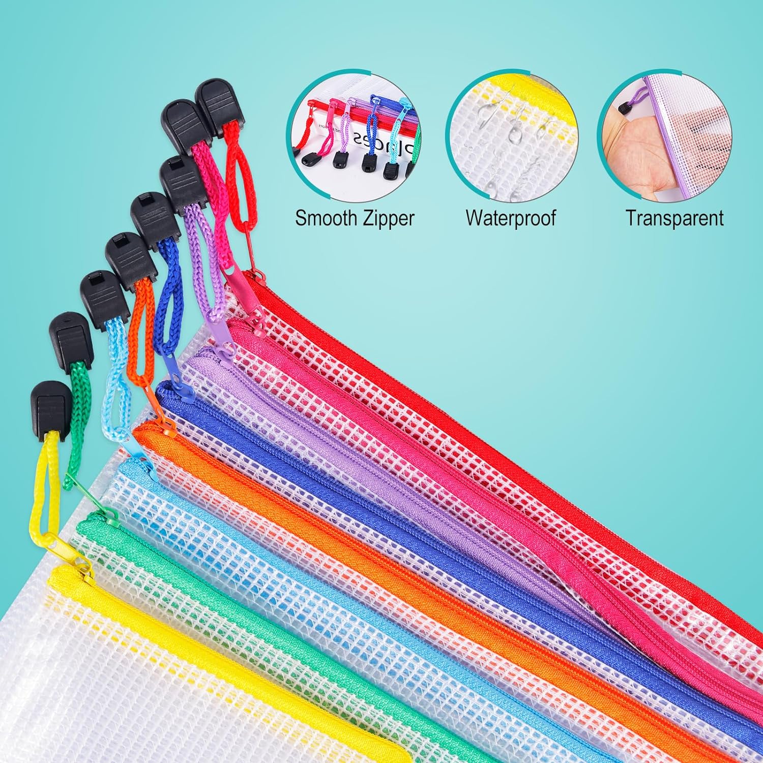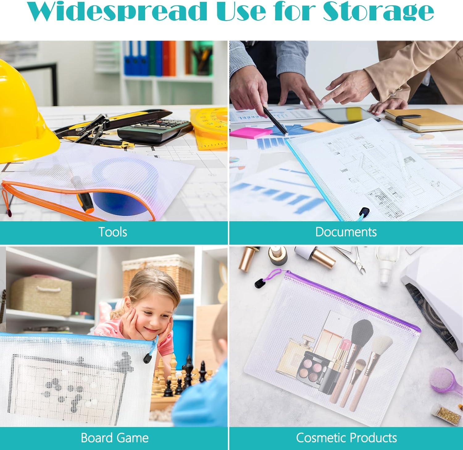 64pcs A4 Mesh Zipper Pouch Bags, Mesh Bags with Zipper Bulk, Pouches for Organization, Clear Storage Bags for Classroom, Travel, Office, Board Game
