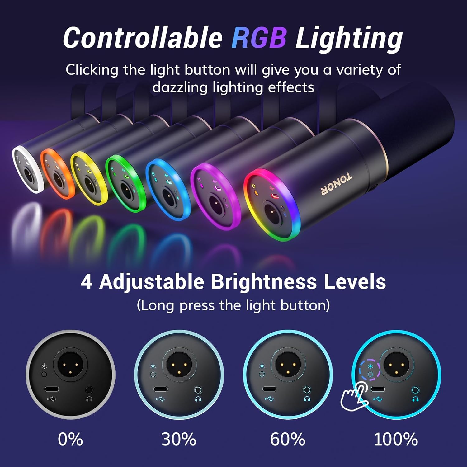 TONOR Dynamic Microphone, XLR/USB Microphone for Gaming, Streaming, XLR Cardioid Studio Mic with Quick Mute, Headphone Jack, Volume Control, Mic with RGB Lighting and Low Profile Boom Arm, TD520s+