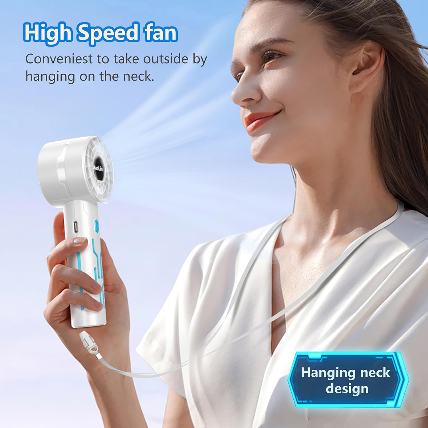 - ăPowerful Motors and Turbochargingă-AaoLin handheld fan built-in powerful brushless motors,adopting turbocharging technology.High technology provides stronger wind speeds and airflow that is closer to nature.