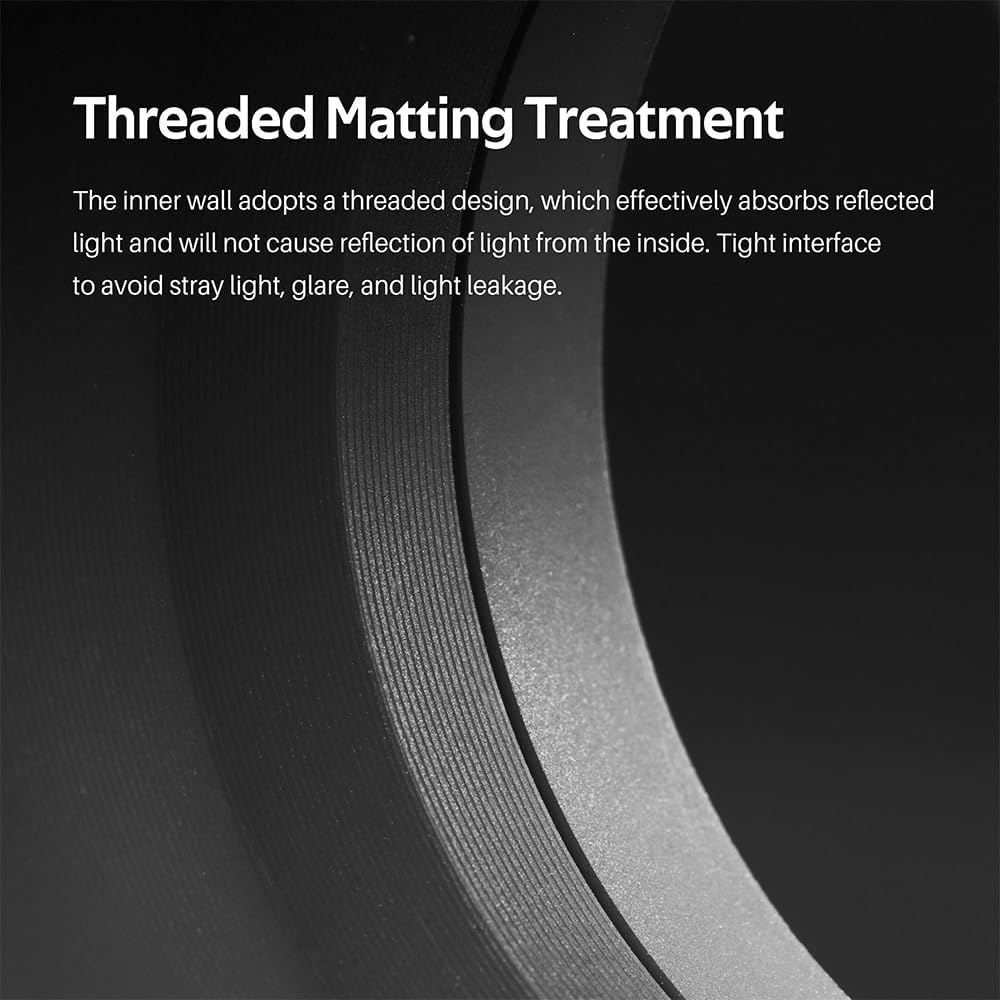 - 【Threaded Matting Treatment】The inner wall adopts a threaded design,which effectively absorbs reflectedlight and will not cause reflection of light from the inside.Tight interfaceto avoid stray light,glare,and light leakage